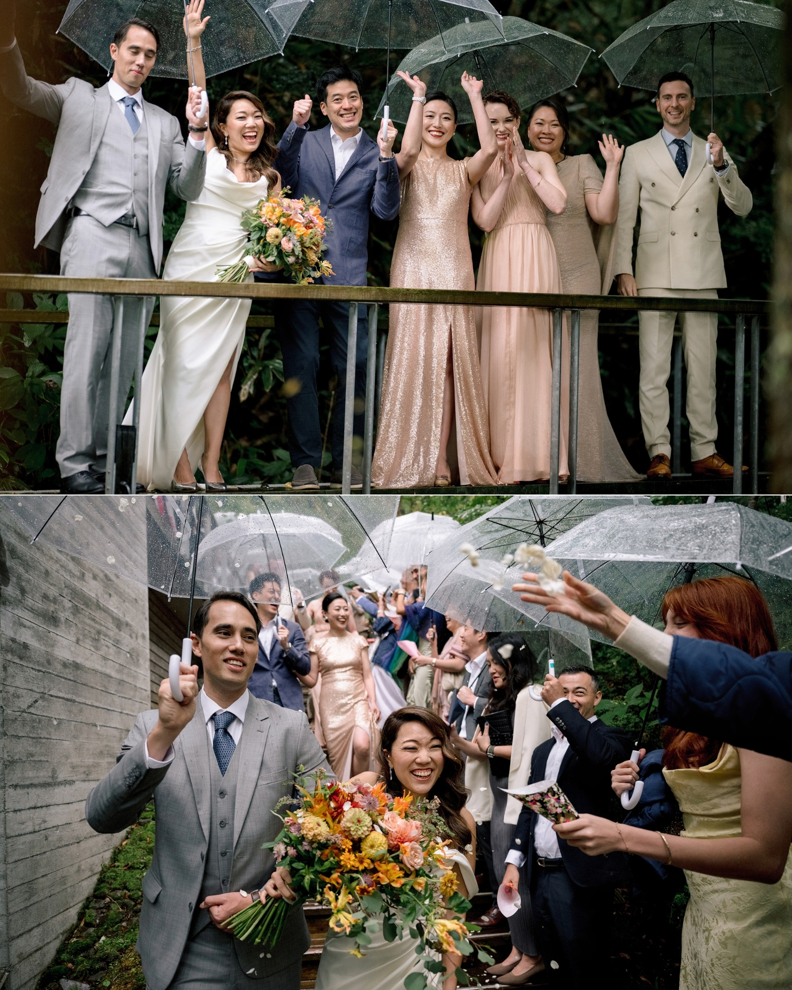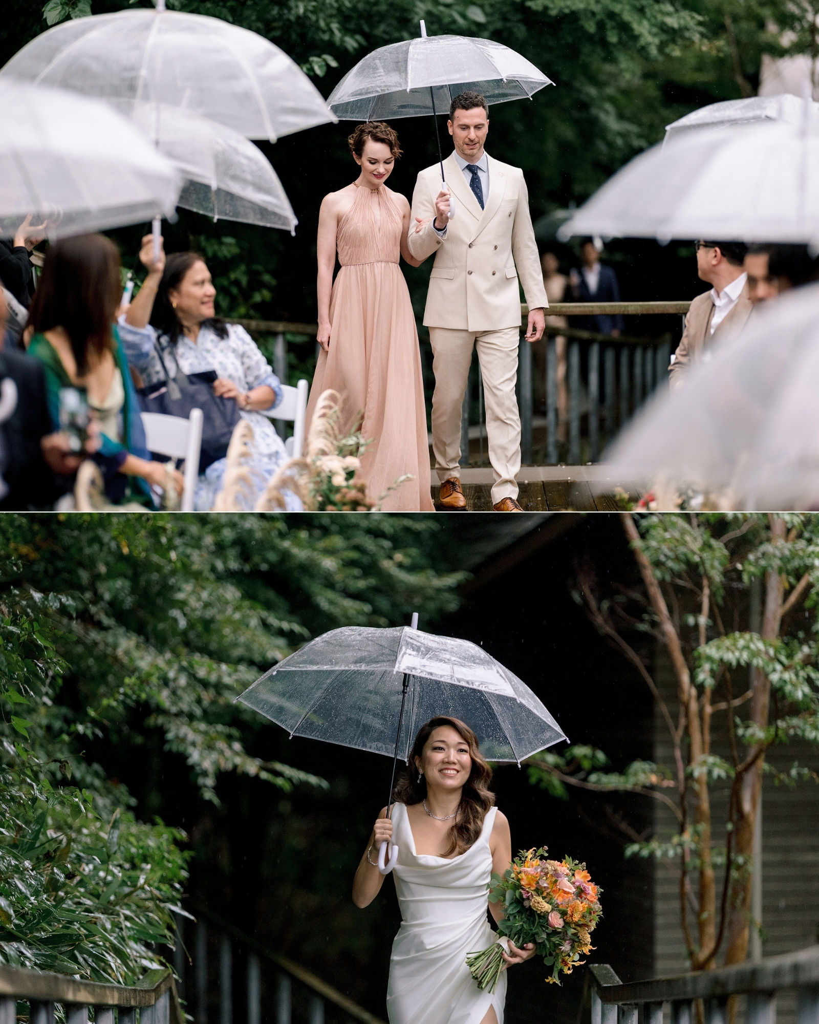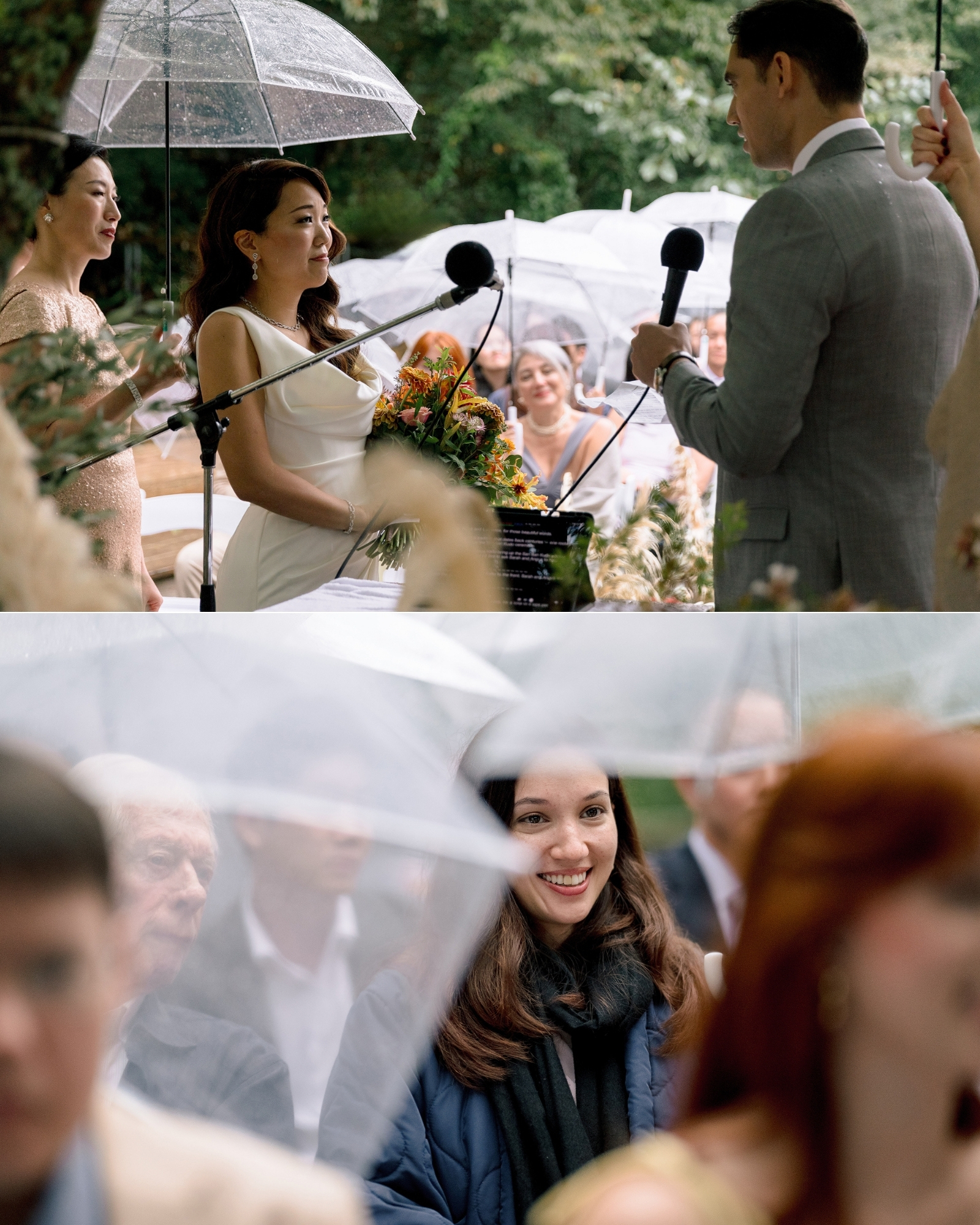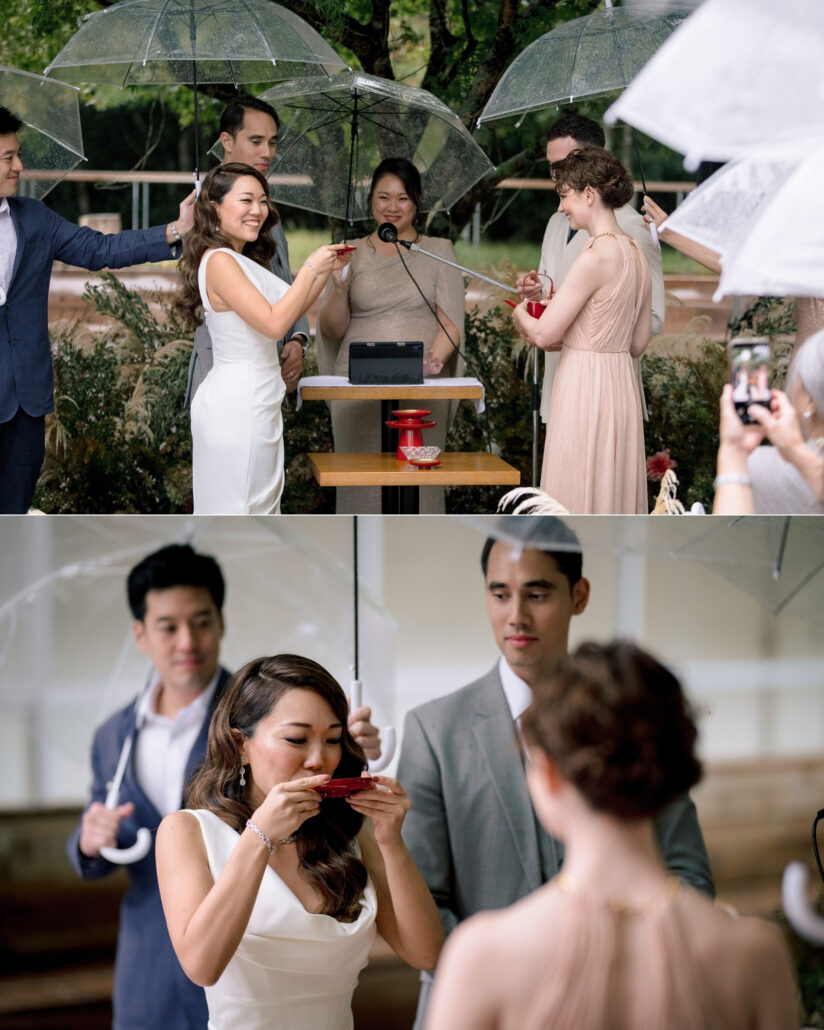 So, surrounded by guests from all over the world … they stepped into the open air and said their vows as droplets danced off umbrellas all around them.