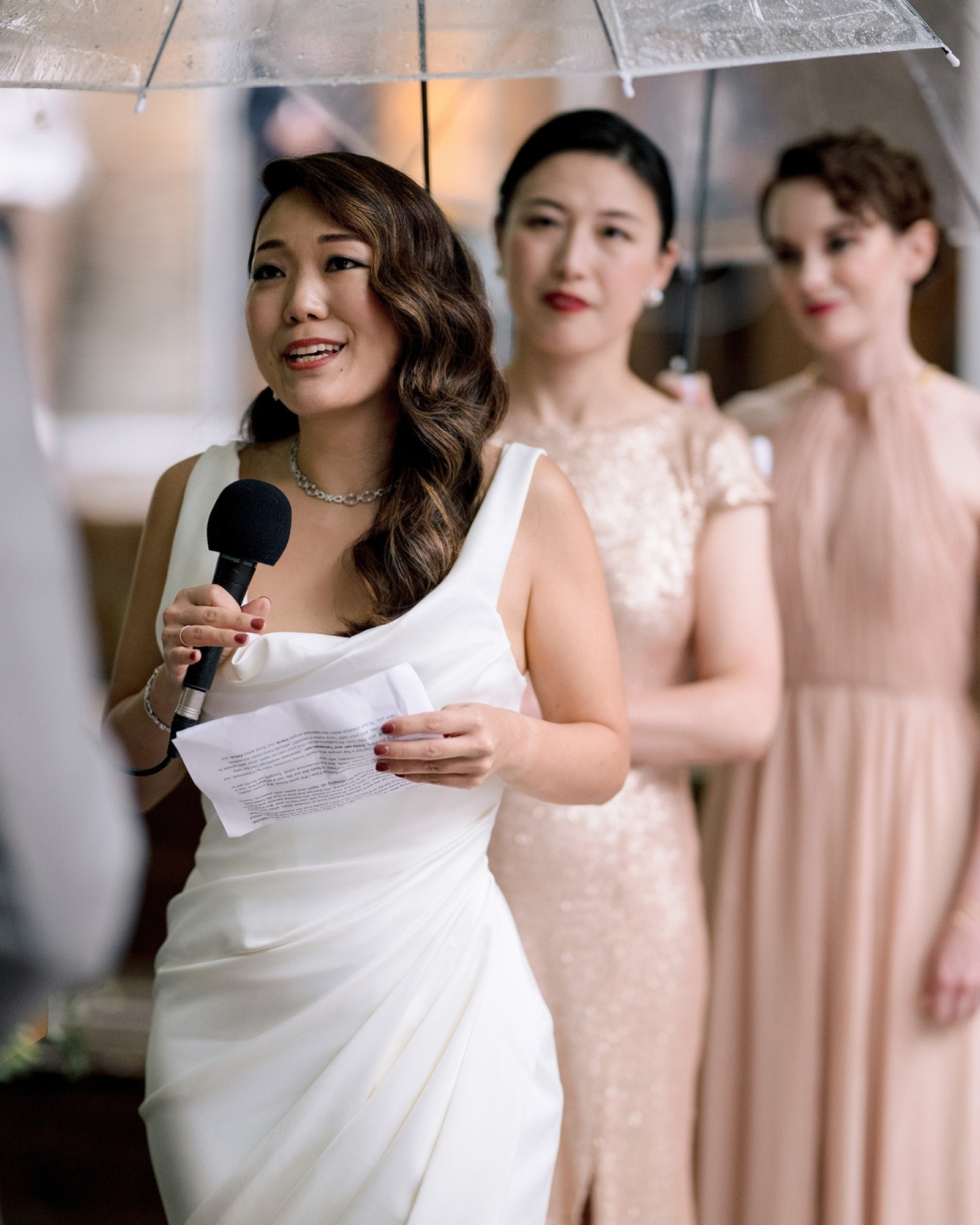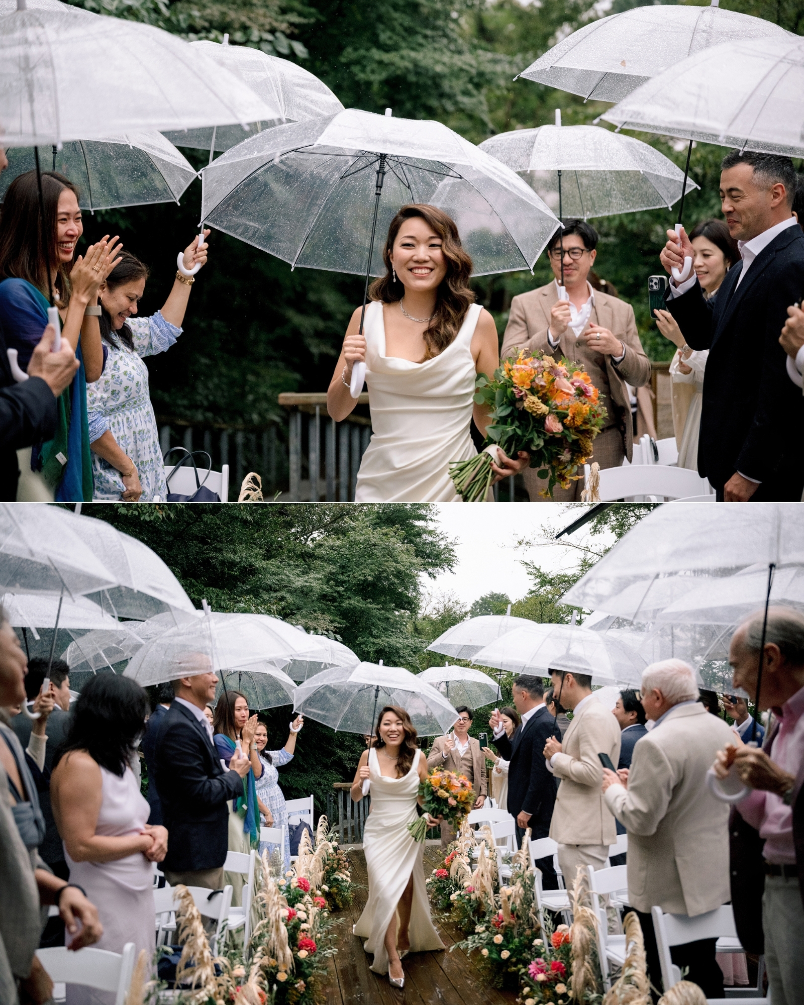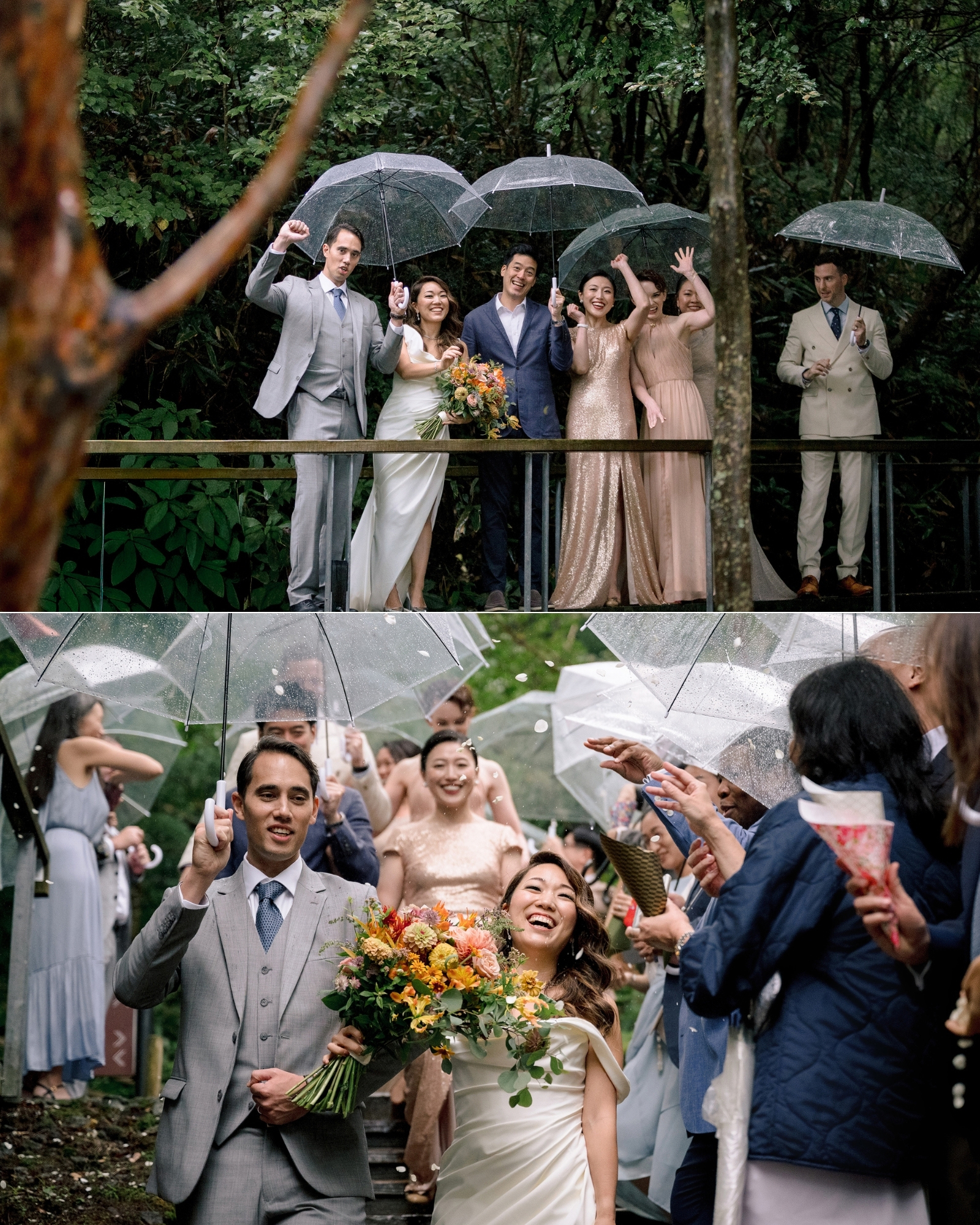 So, surrounded by guests from all over the world … they stepped into the open air and said their vows as droplets danced off umbrellas all around them.