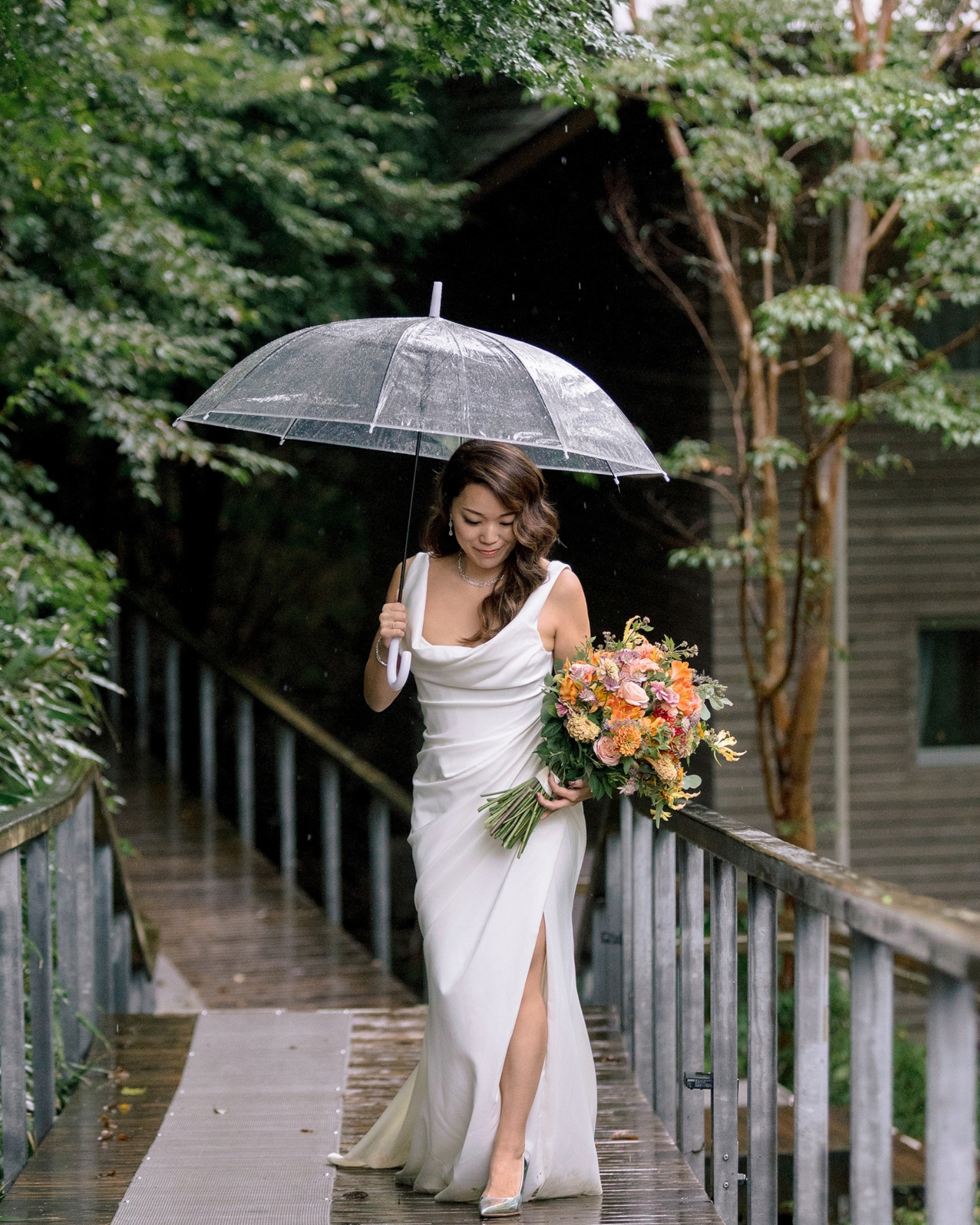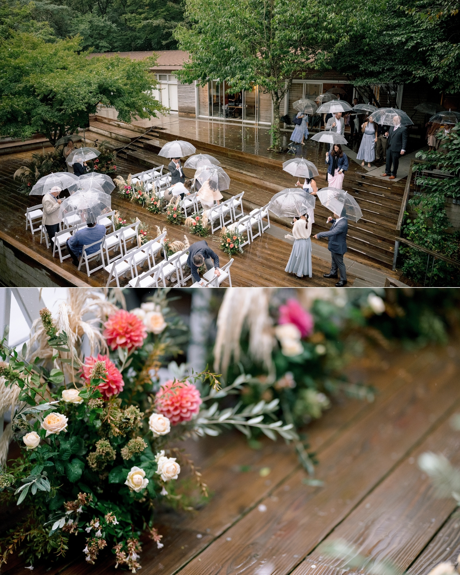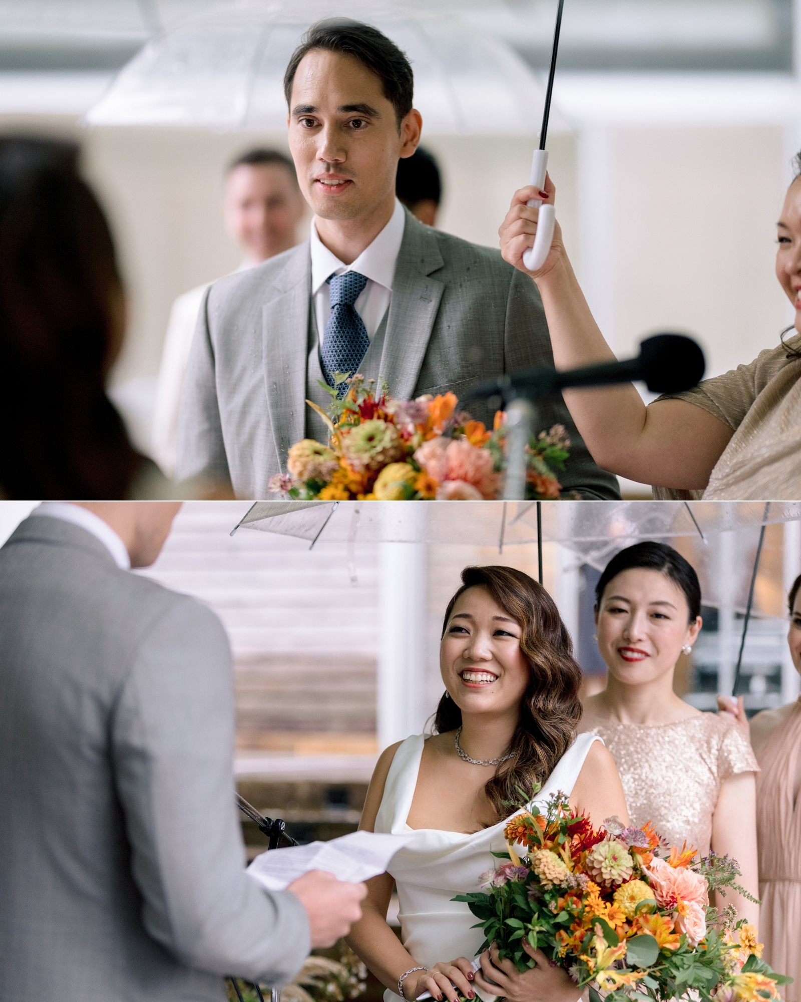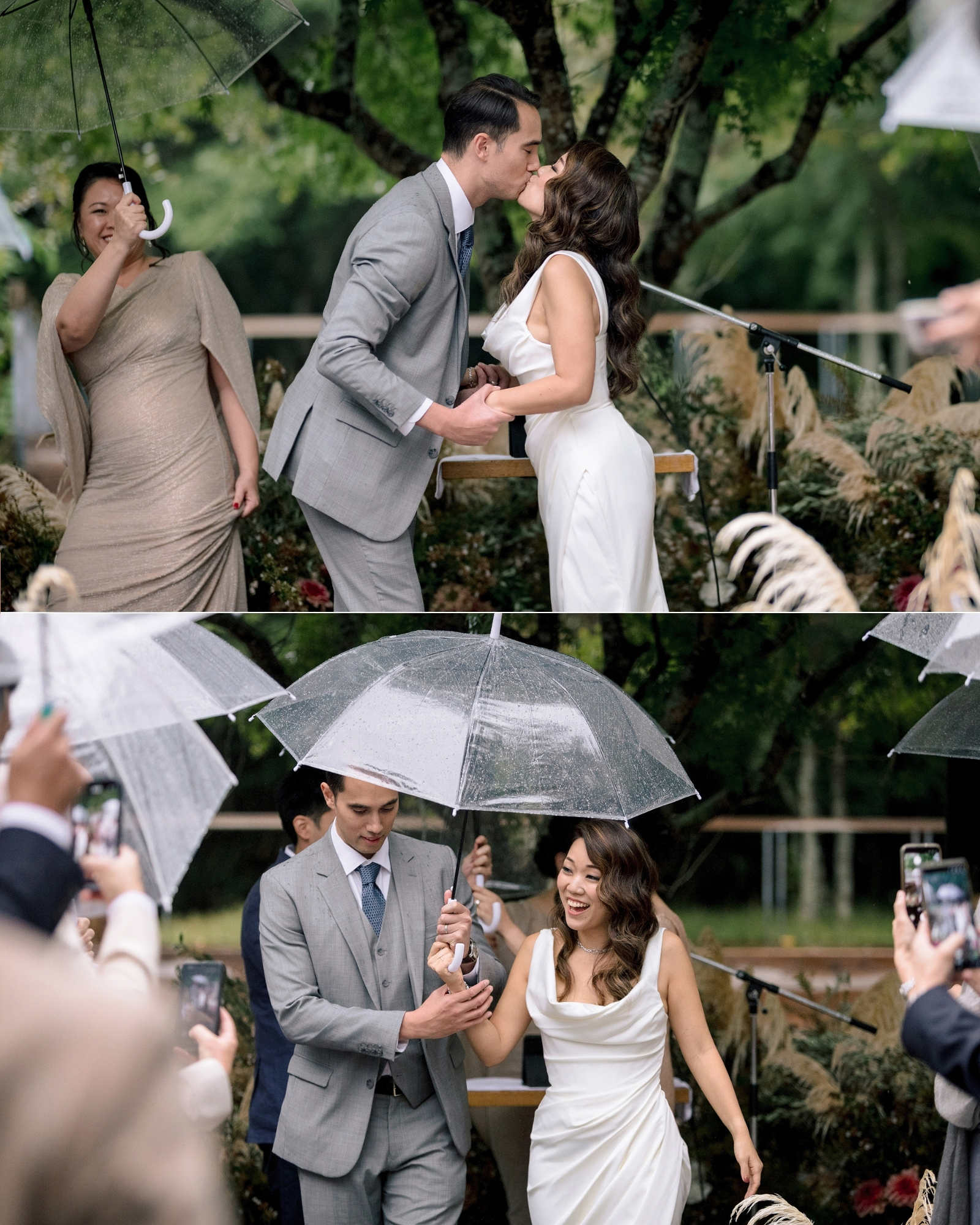 So, surrounded by guests from all over the world … they stepped into the open air and said their vows as droplets danced off umbrellas all around them.