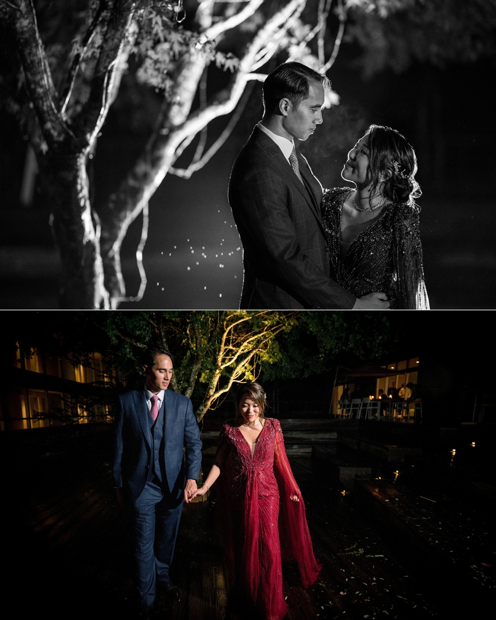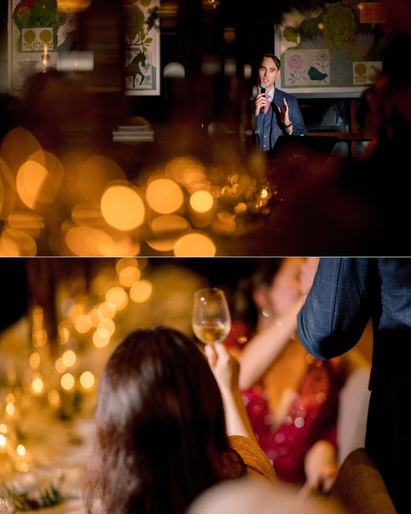 As twilight settled, the celebration continued in true destination wedding fashion … with heartfelt speeches, impromptu songs, and the clinking of champagne glasses echoing against the rain outside.