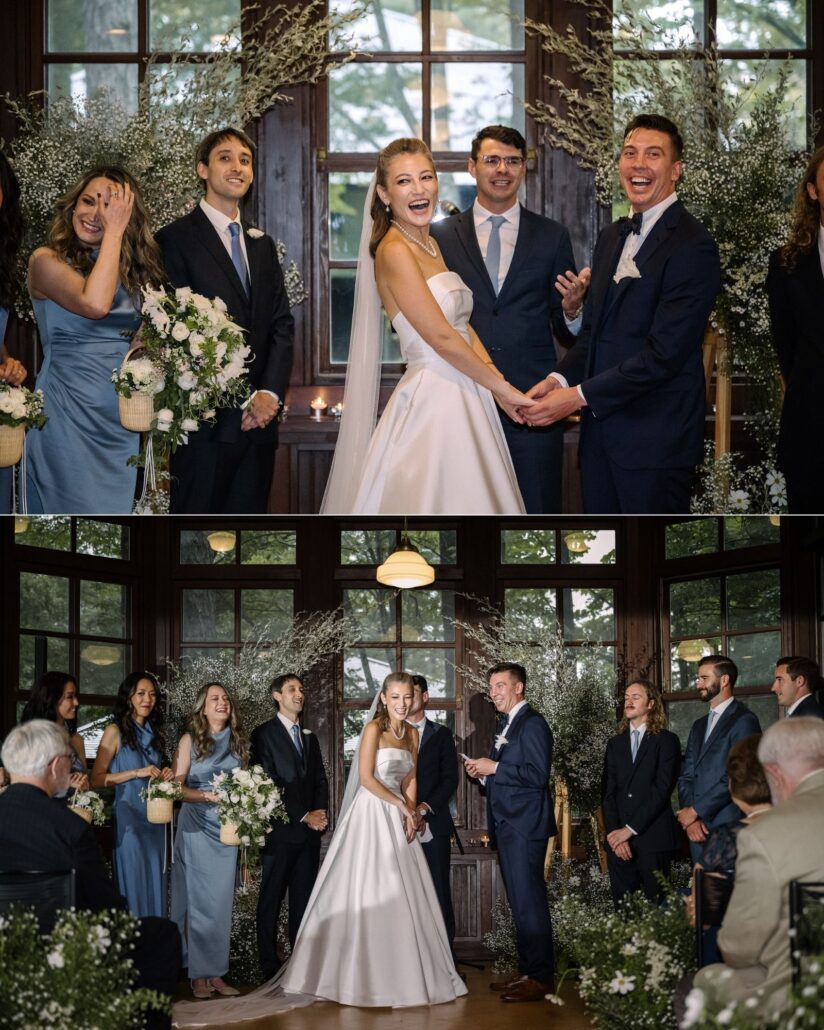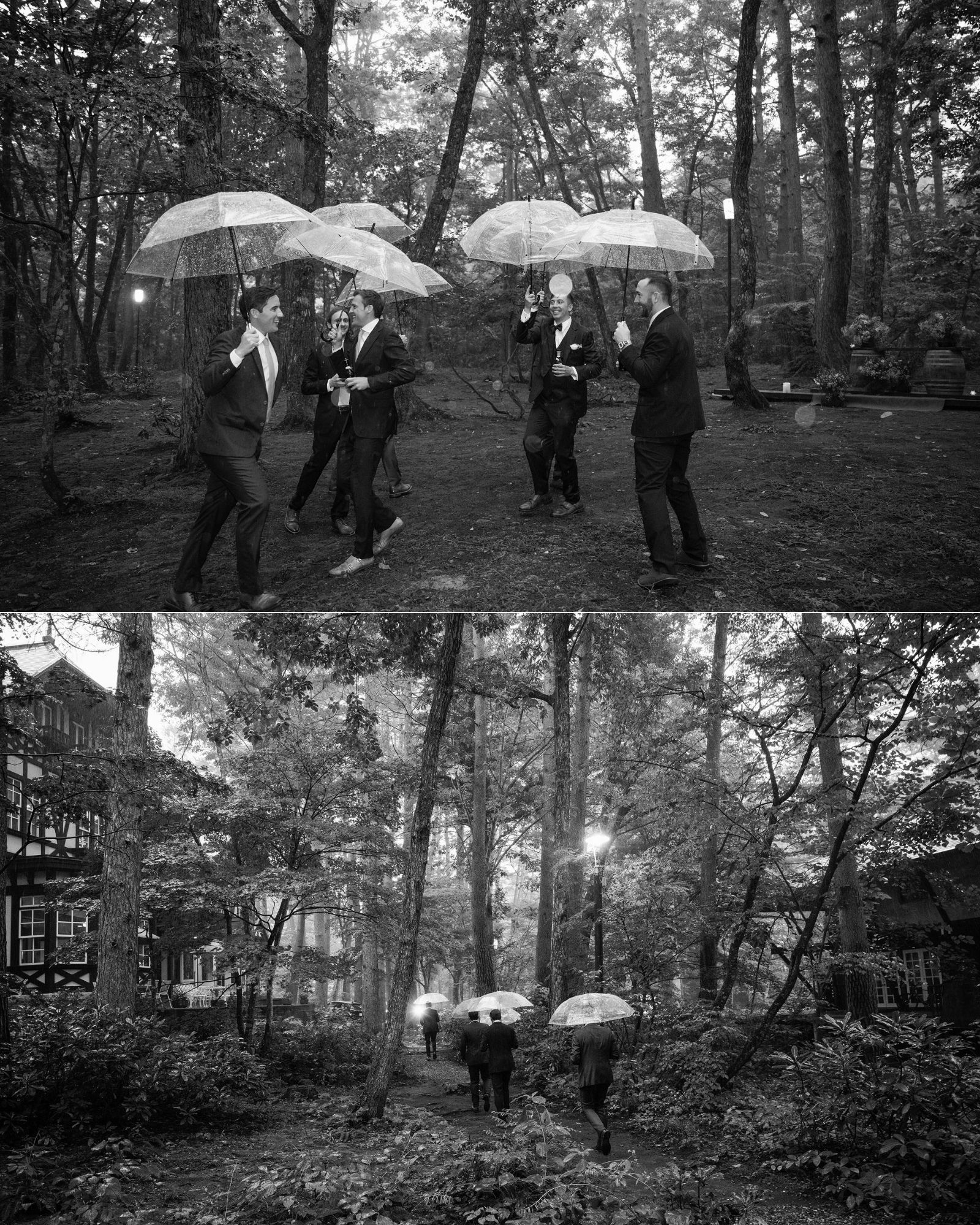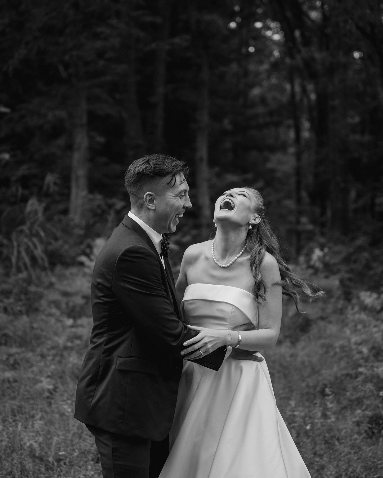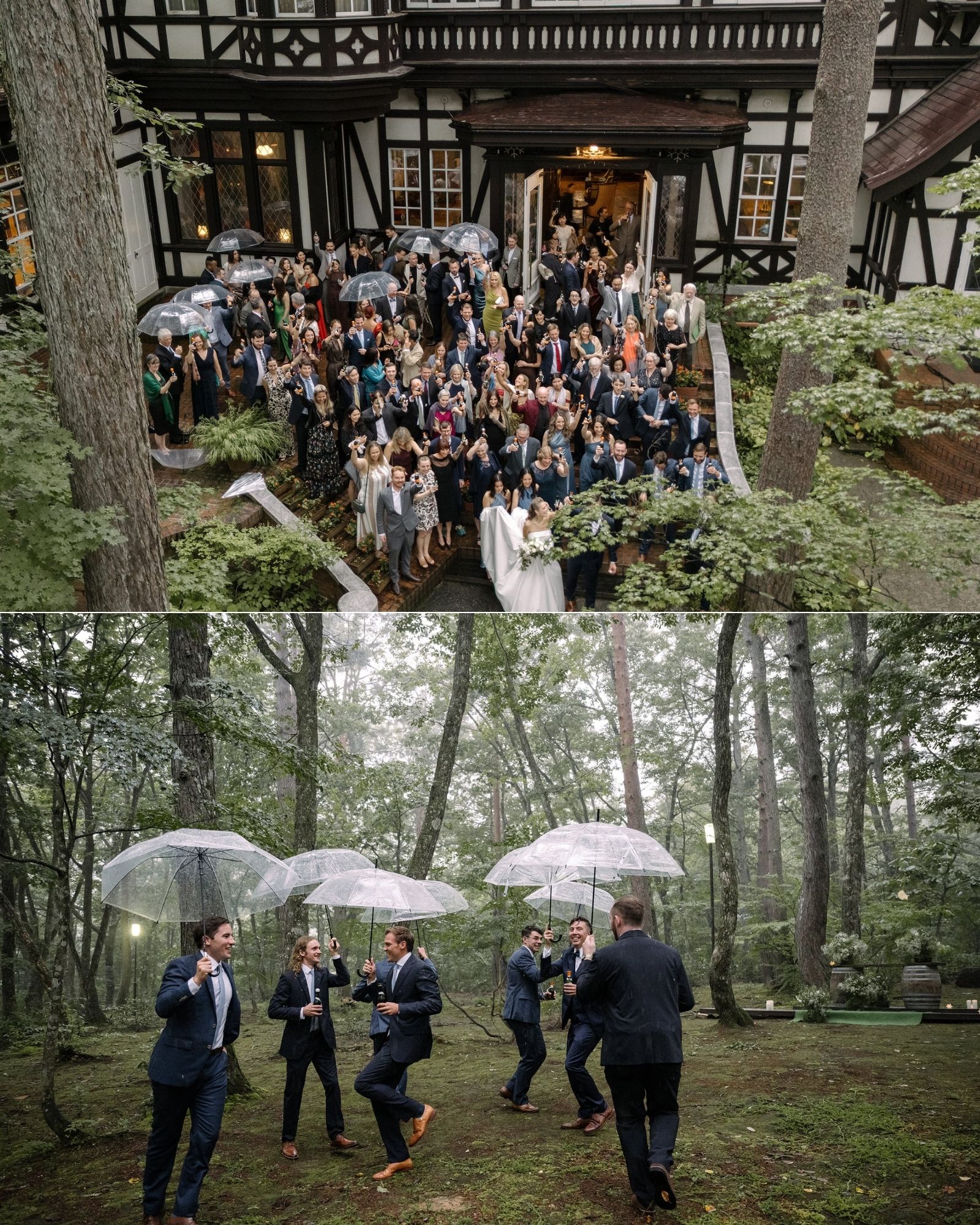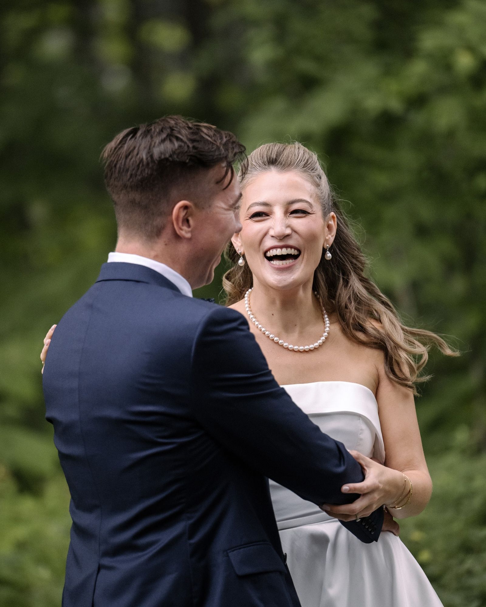 And because the couple are who they are … joyful, adventurous, heart-first … there was still a dance in the rain. The groomsmen kicked up mud in the forest where the ceremony would have been, turning what could have been disappointment into memory.