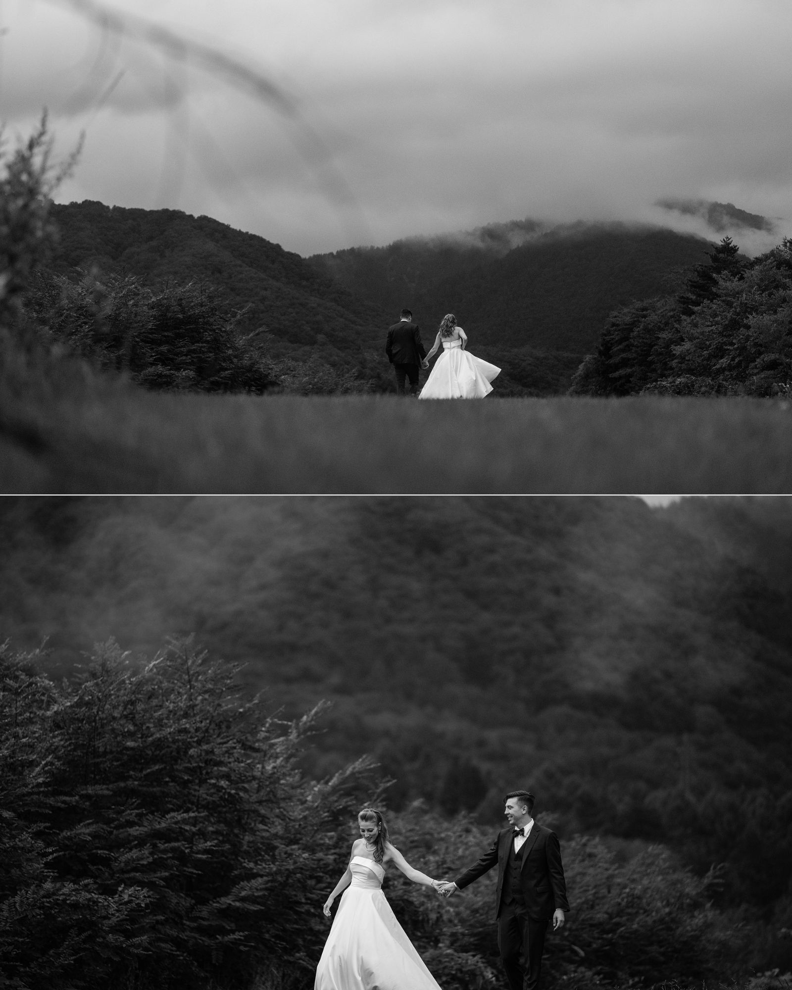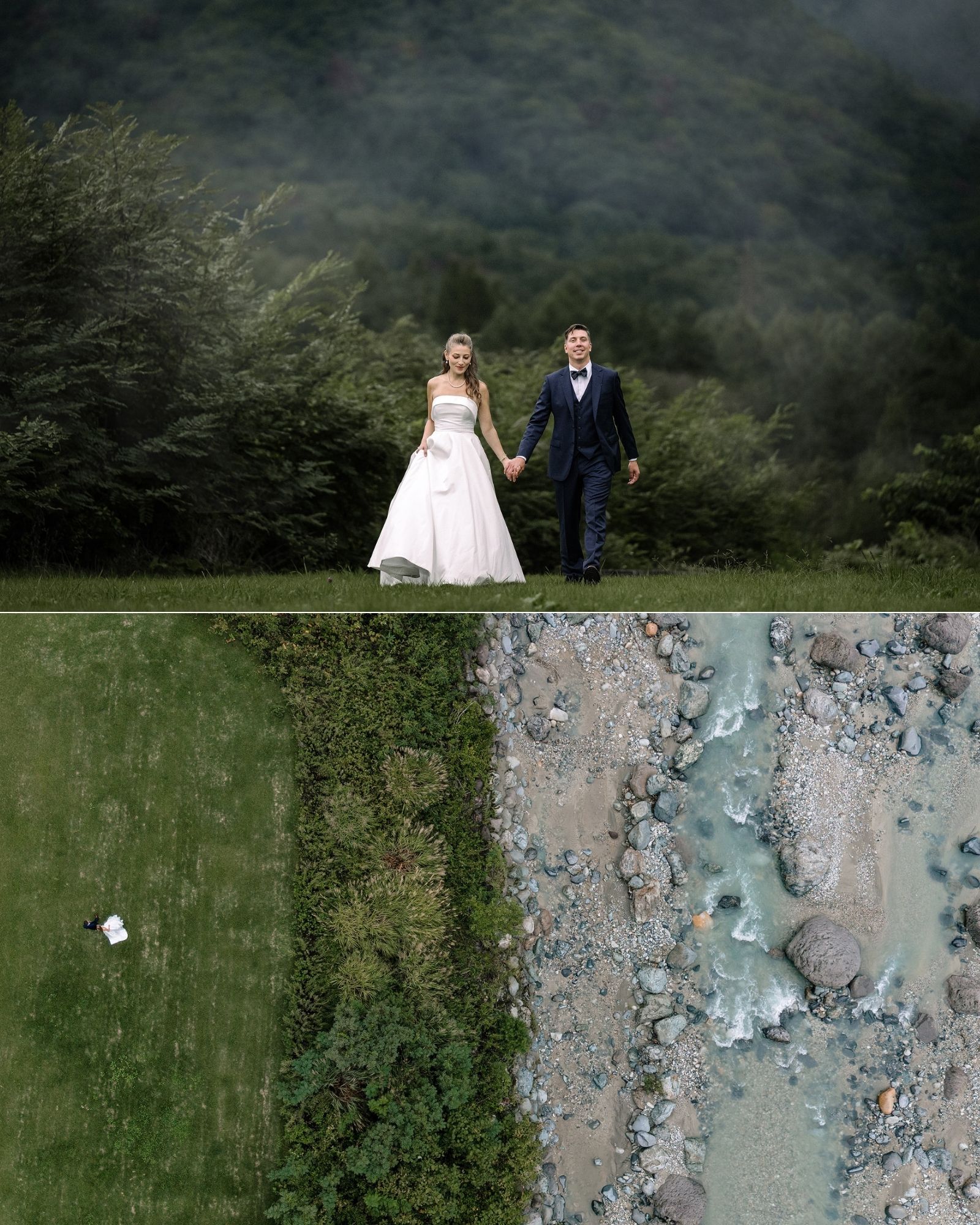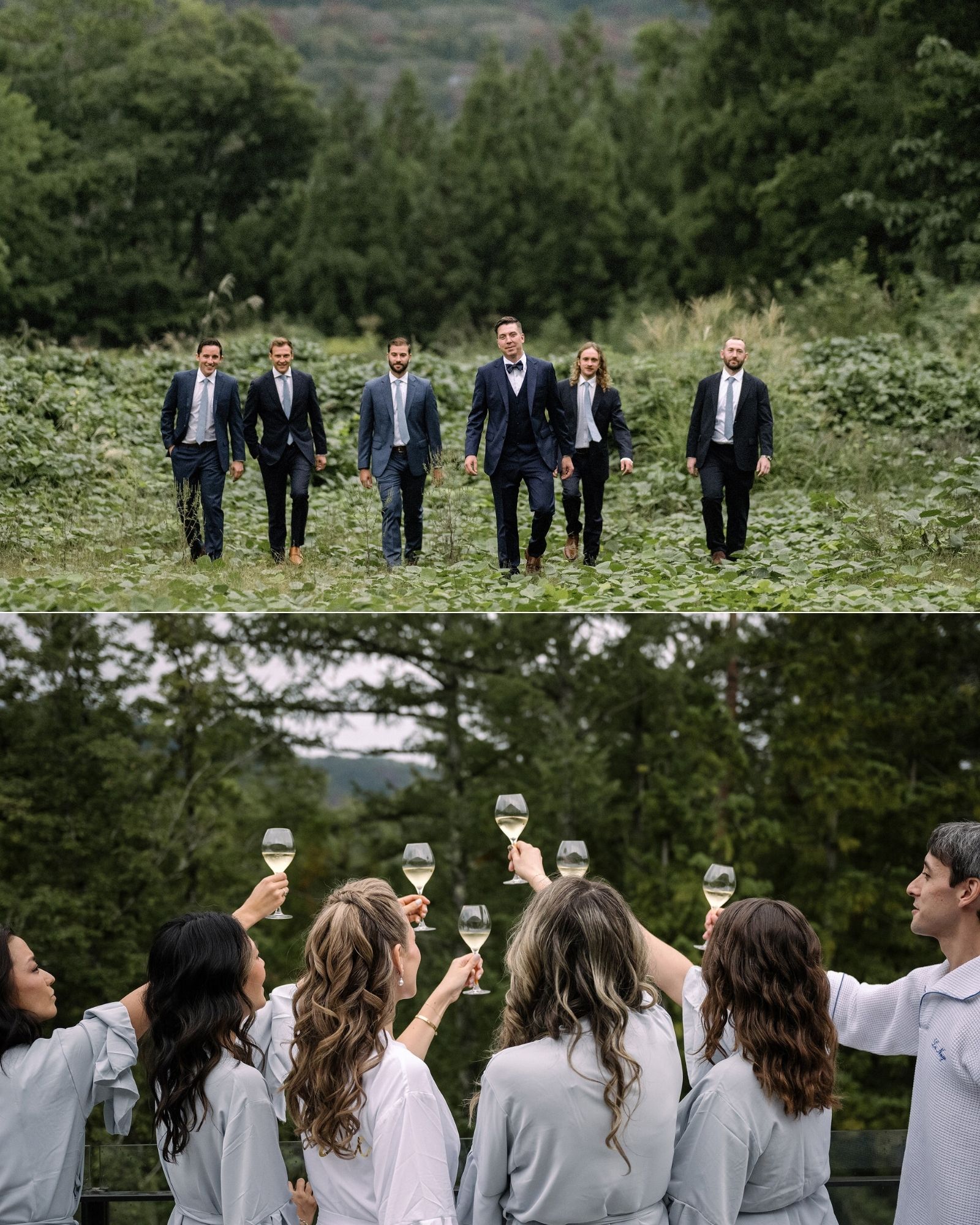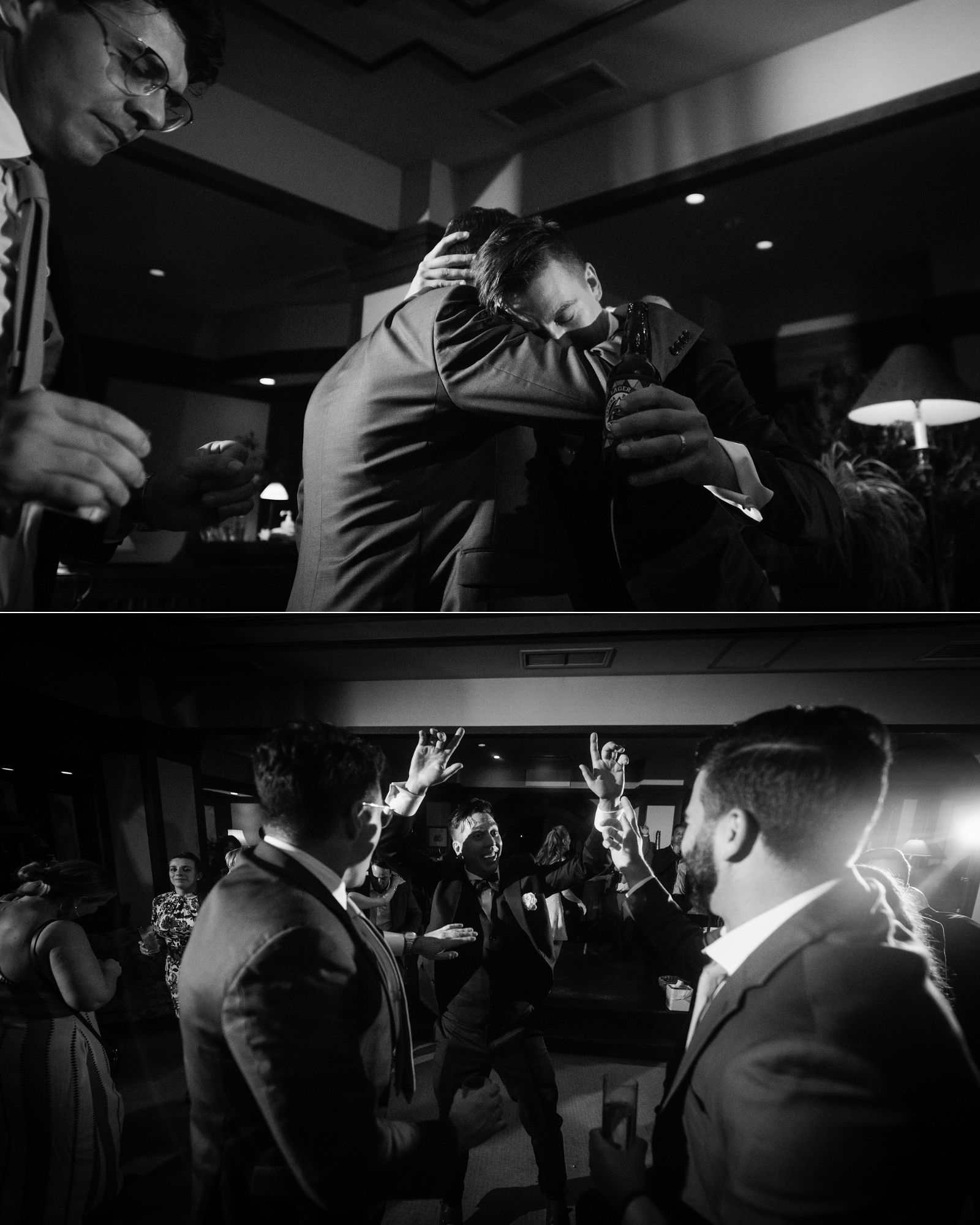 And because the couple are who they are … joyful, adventurous, heart-first … there was still a dance in the rain. The groomsmen kicked up mud in the forest where the ceremony would have been, turning what could have been disappointment into memory.