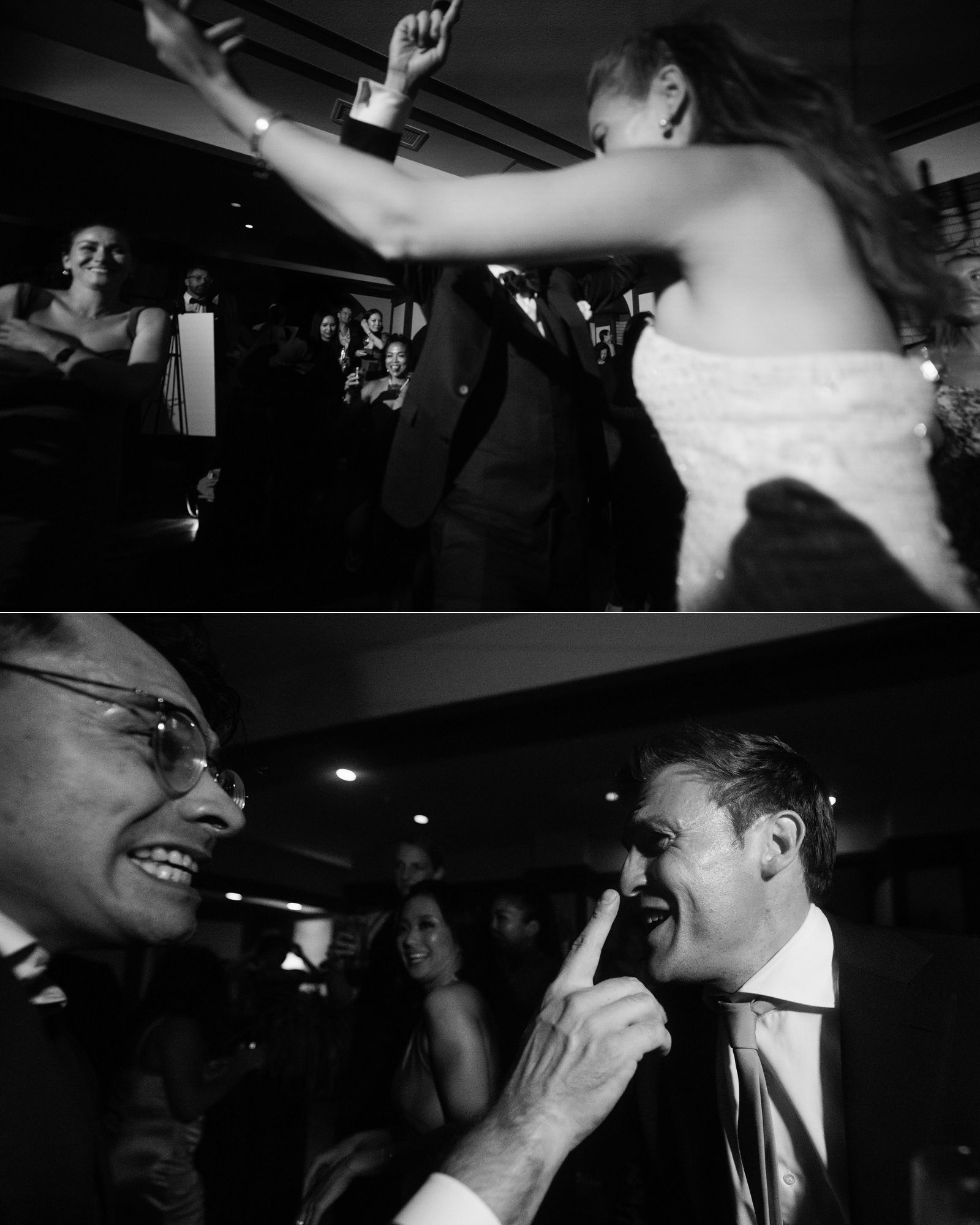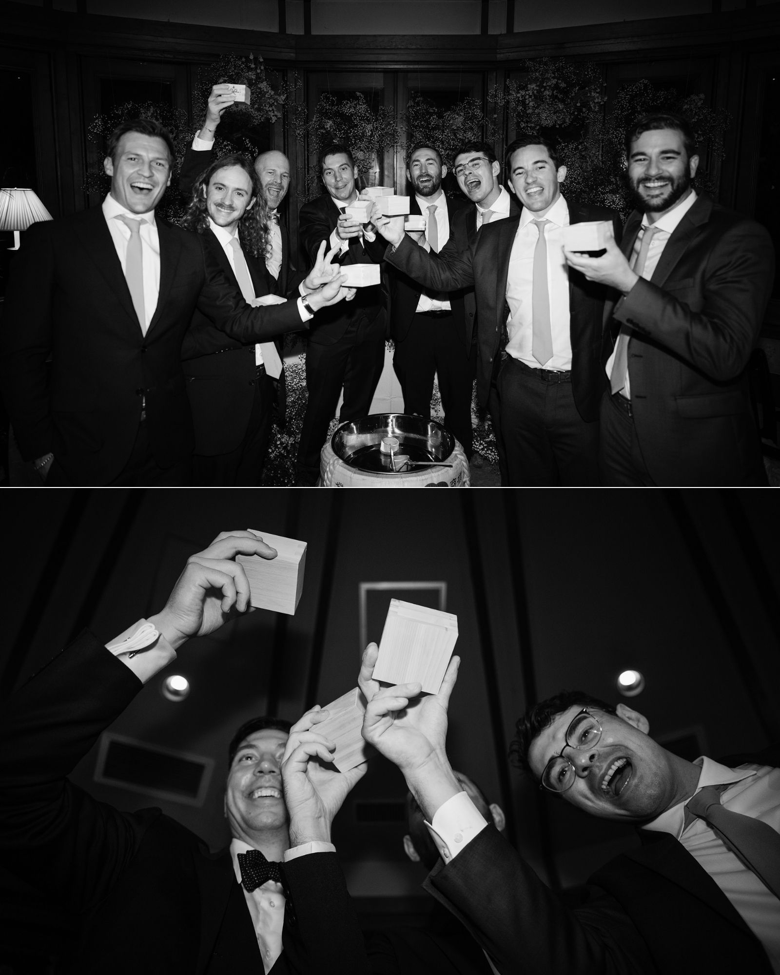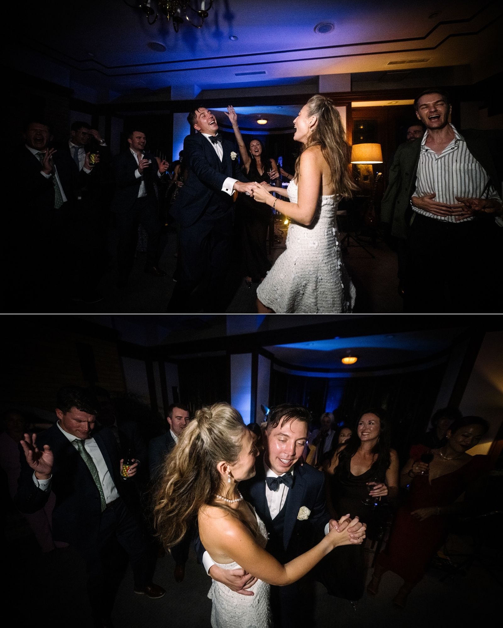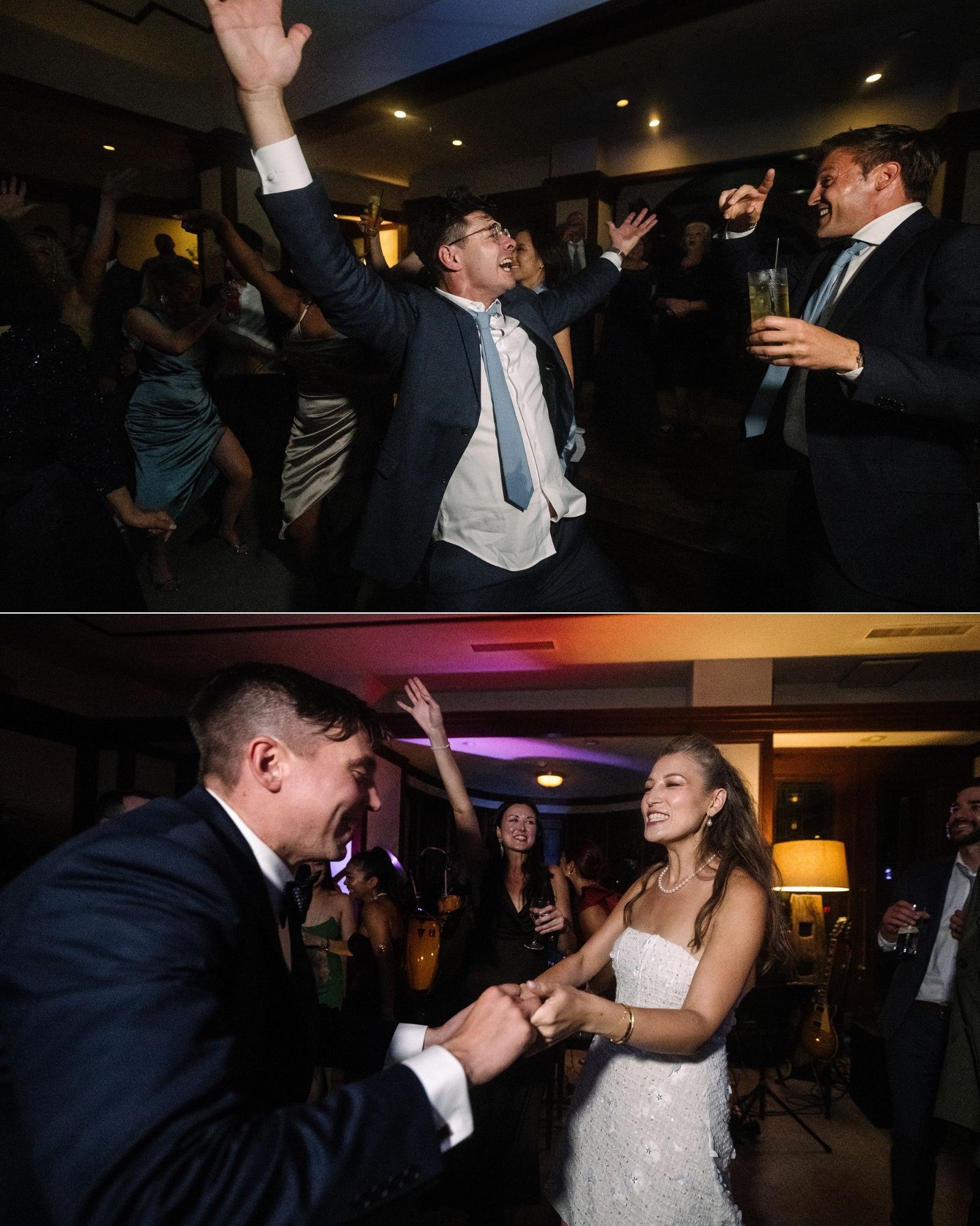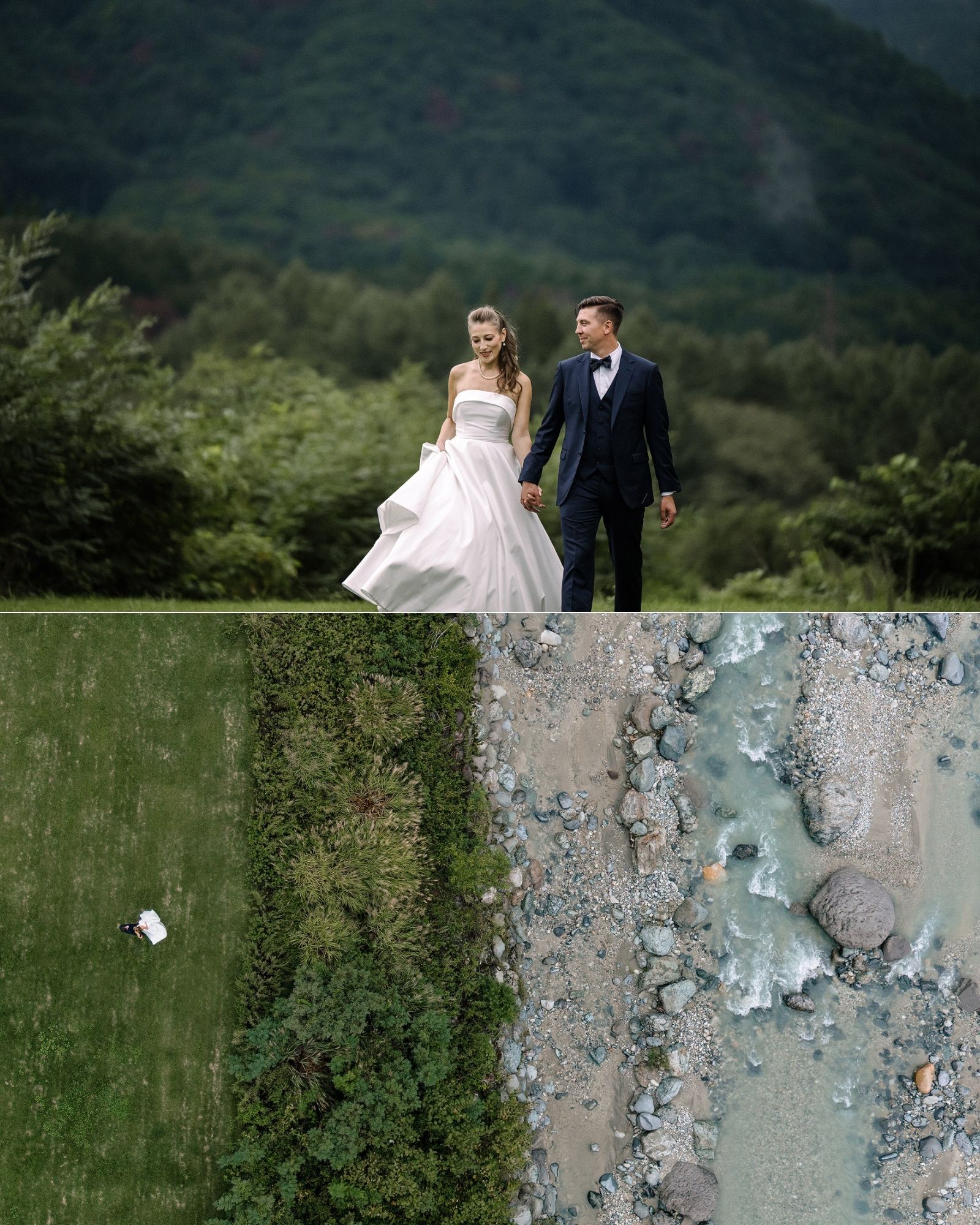 And because the couple are who they are … joyful, adventurous, heart-first … there was still a dance in the rain. The groomsmen kicked up mud in the forest where the ceremony would have been, turning what could have been disappointment into memory.