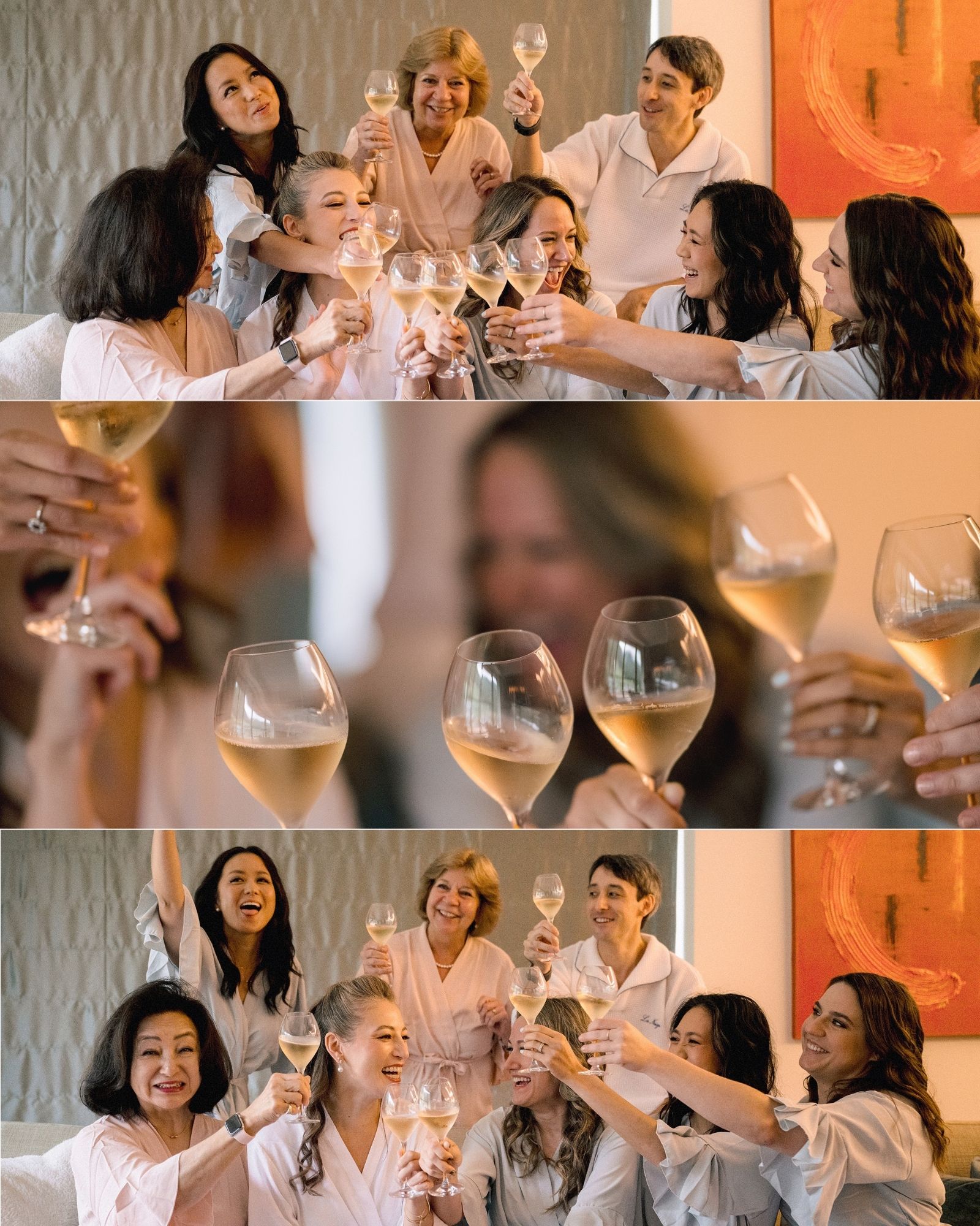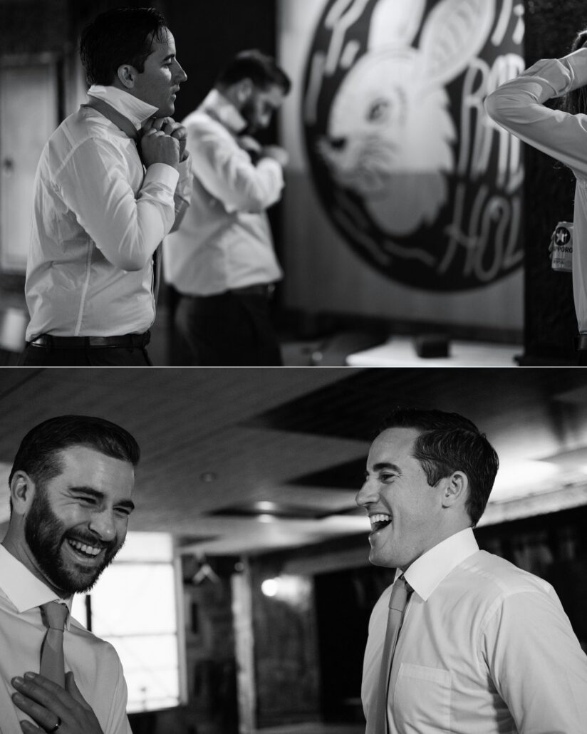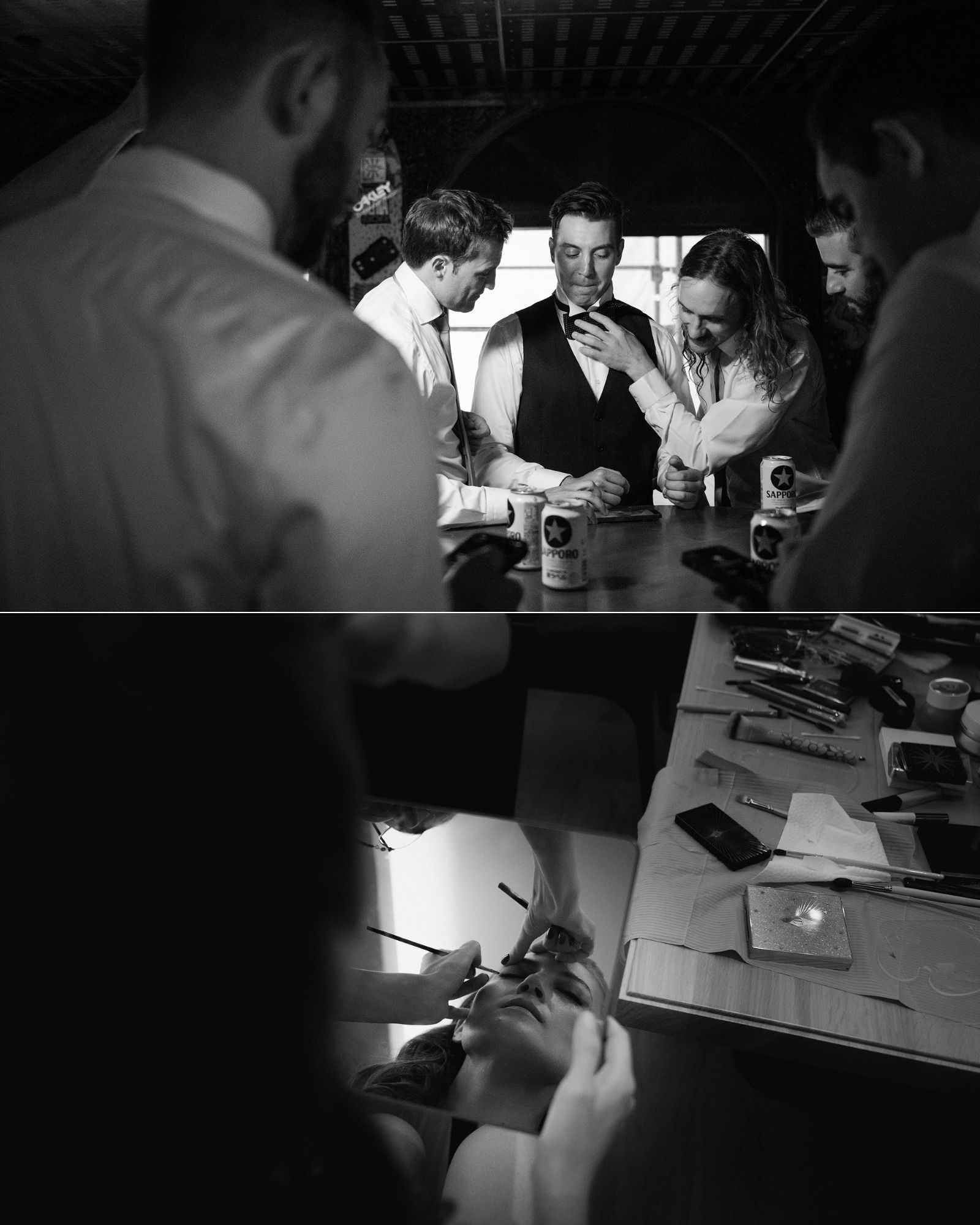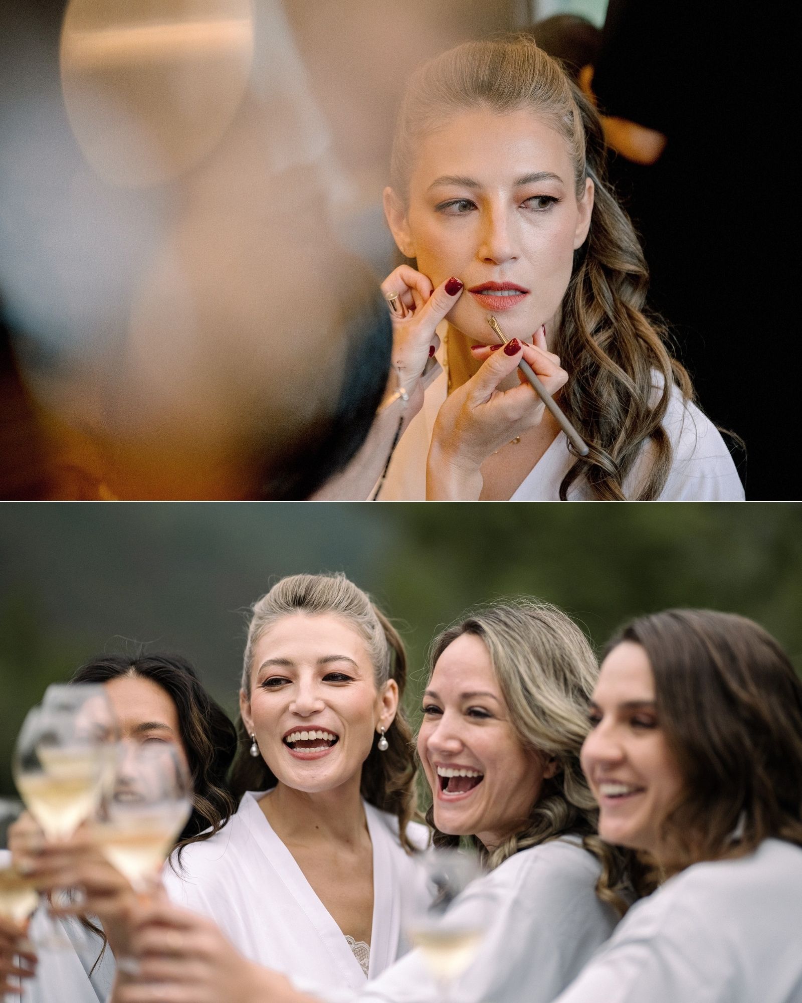 Getting ready isn’t about logistics. It’s about nerves, laughter, and the tiny stories that carry into the big ones. From those parallel beginnings, the energy started to build. All leading to vows, rain, and one unforgettable reception.