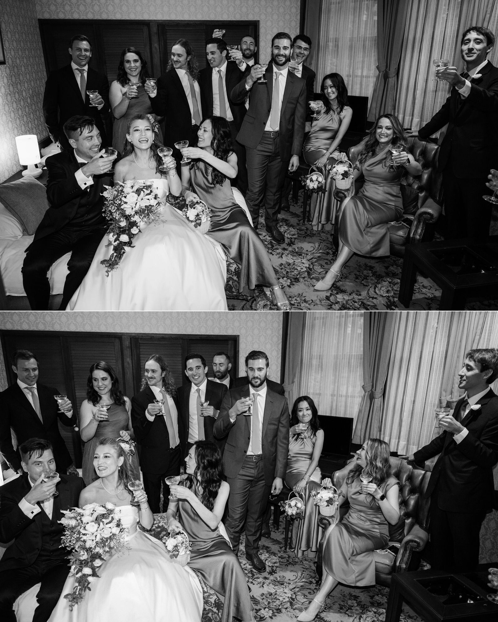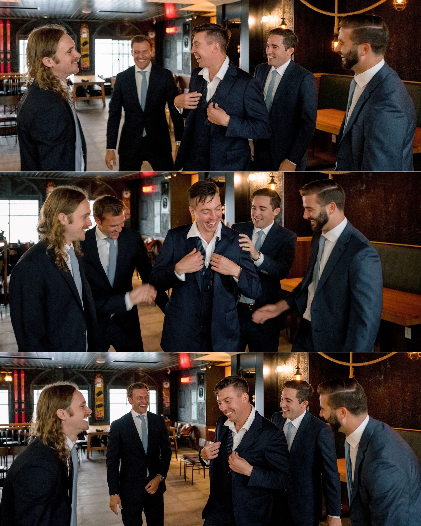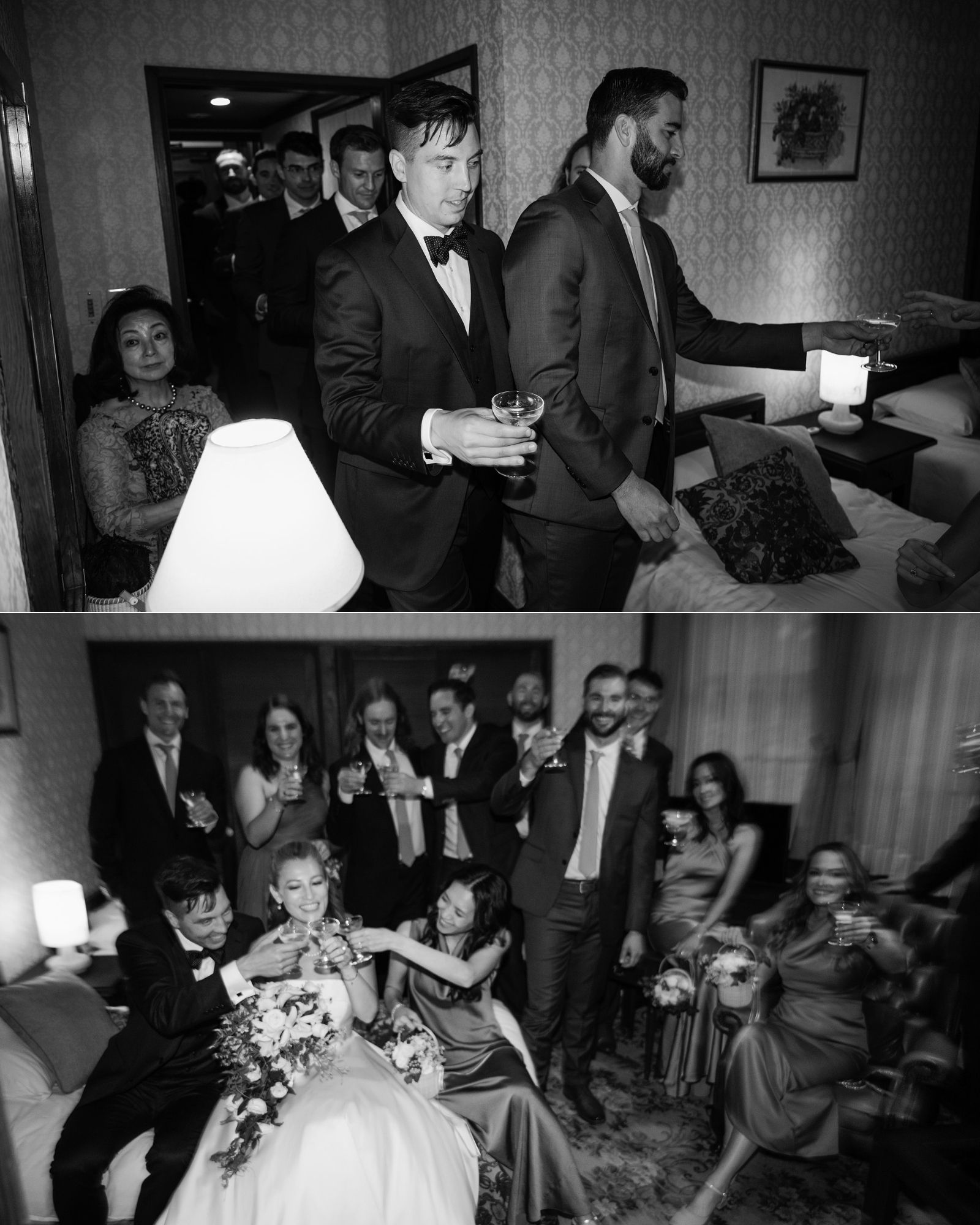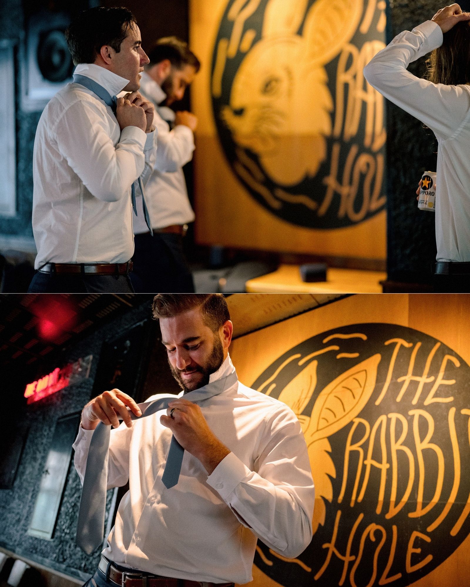 Every destination wedding begins with its own rhythm. In Hakuba, the girls got ready down the road, champagne and music filling the air, bridesmaids steaming dresses and passing gifts. Meanwhile, the boys claimed The Rabbit Hole bar, iconic apres-ski vibes intact, bowties resisting every YouTube tutorial they tried.