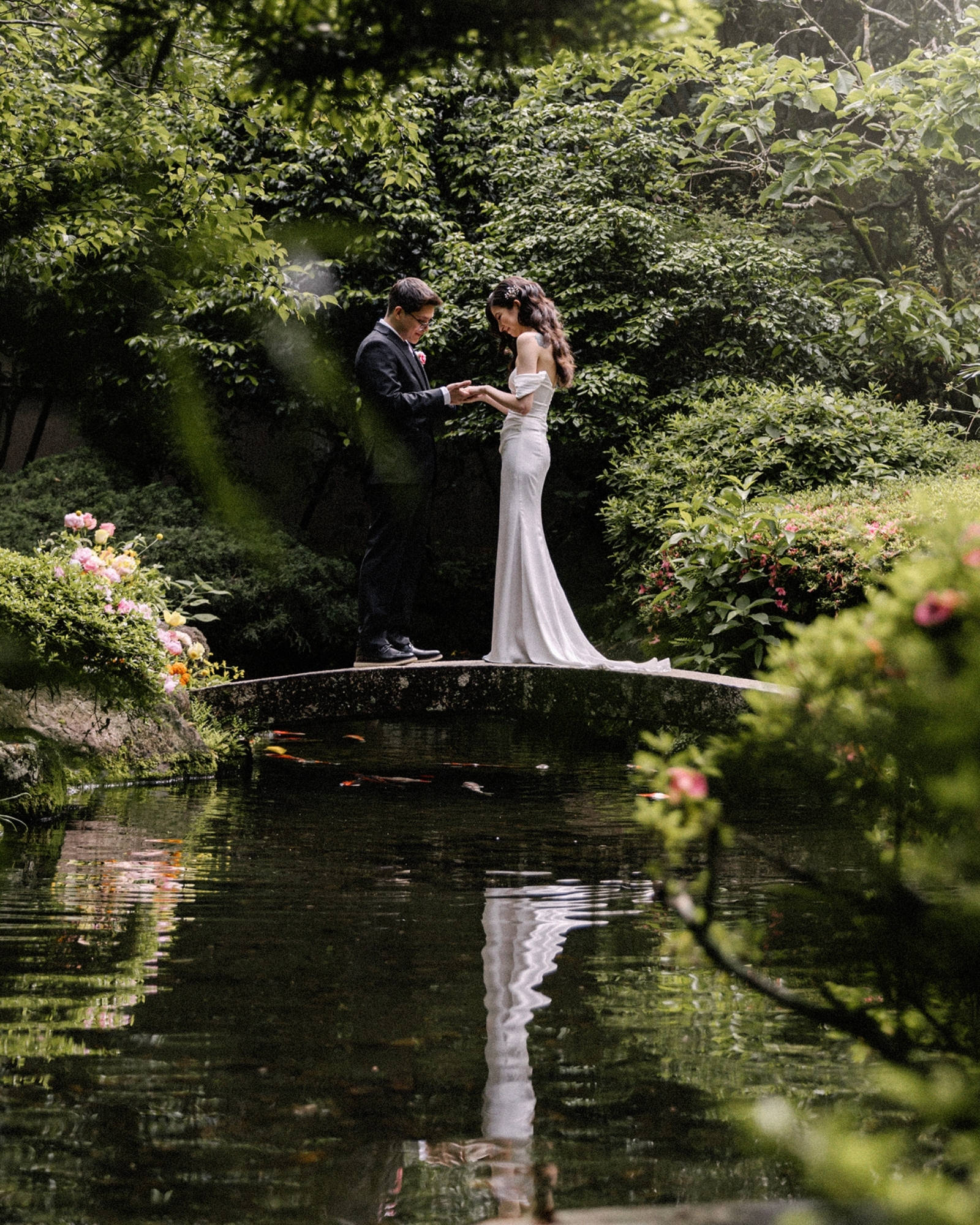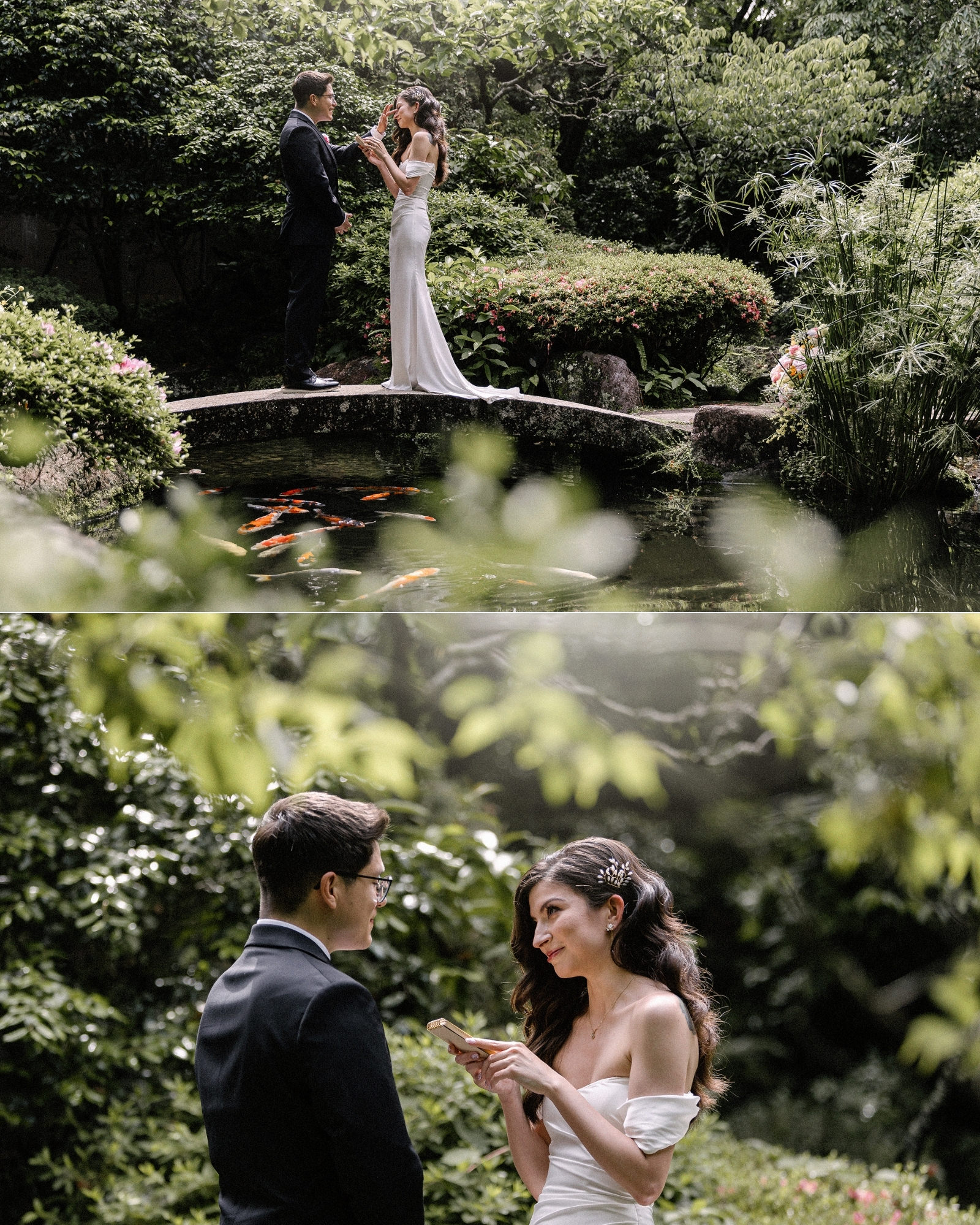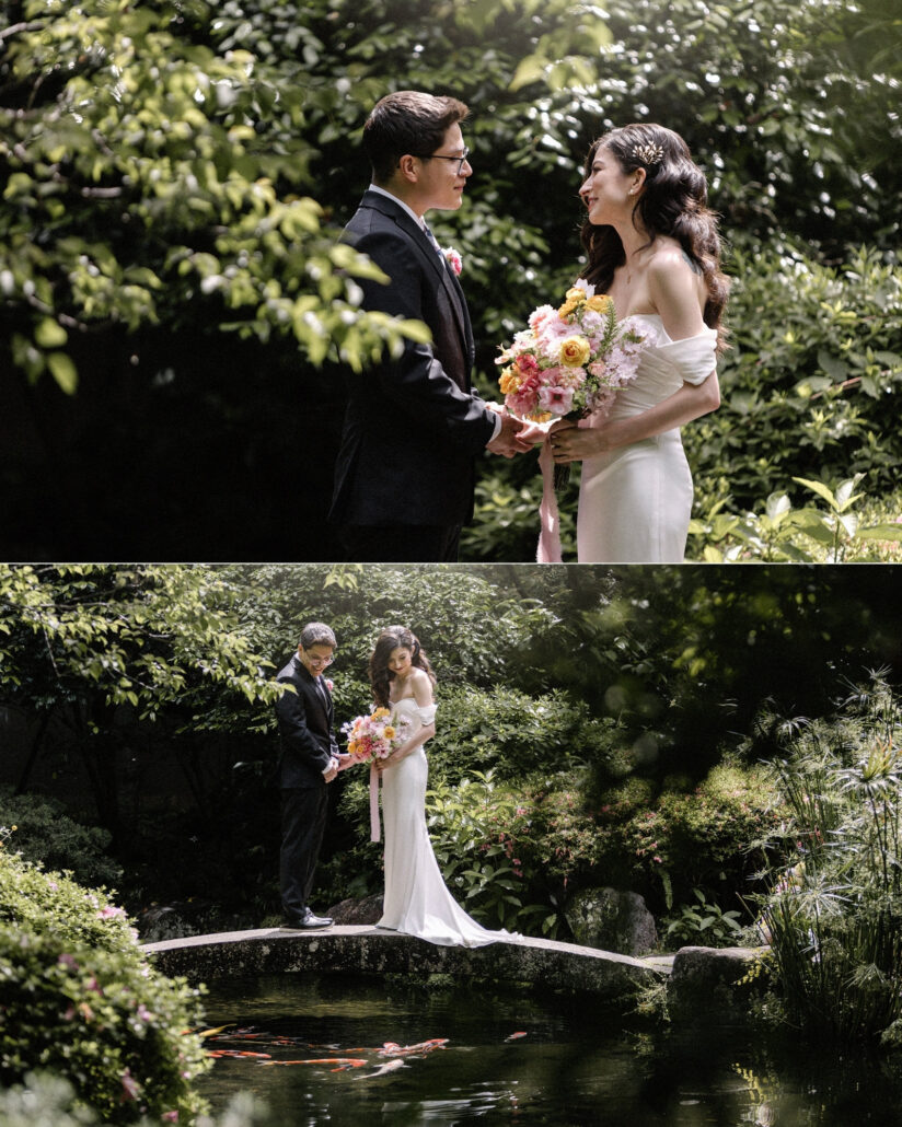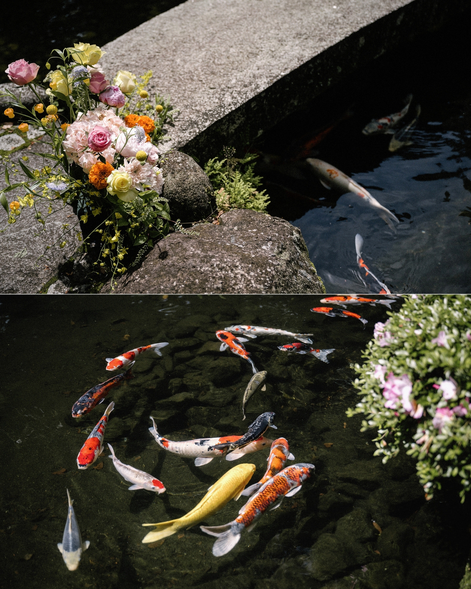 From there, the day moved like chapters in a book. A ceremony framed by a Japanese garden. Carp swimming lazily past as we captured vows that needed no amplification. Only presence.