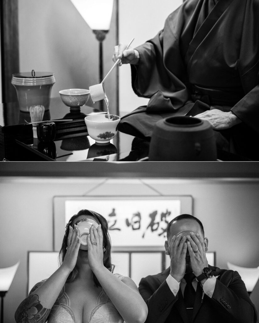 At the edge of the forest sits a traditional teahouse and restaurant, where the couple and their children gathered for a ceremony led by a master of tea. A tea ceremony is never just about tea. It’s about attention, intention, presence. Every bow, every whisk, every sip is a meditation on harmony and respect.