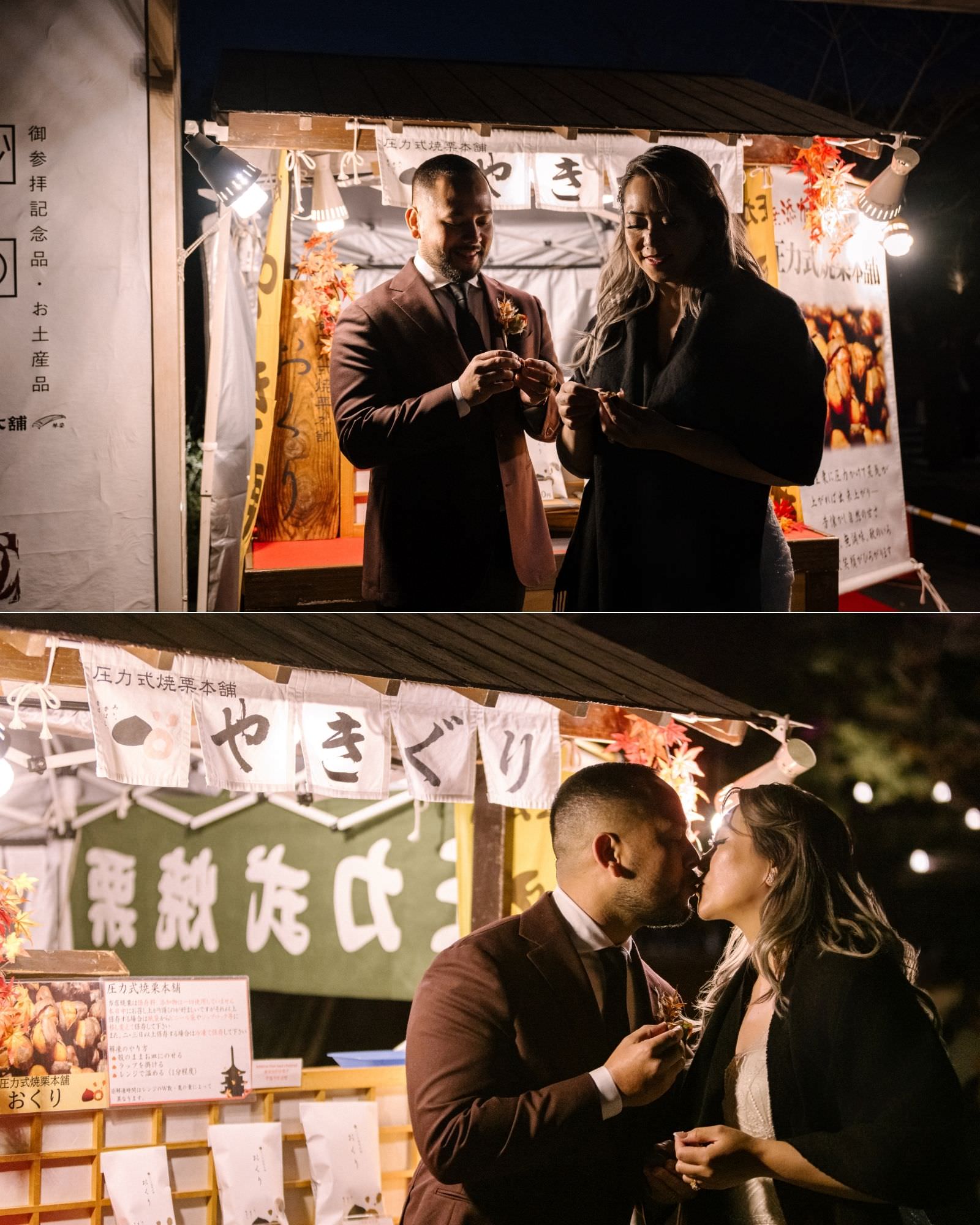 After the ceremony, while the children headed off with grandma, the couple slipped into the city for their own adventure. Wandering through Kyoto … past lantern-lit alleys, temples with vermilion gates, and riverside paths … they carried the stillness of the forest with them.