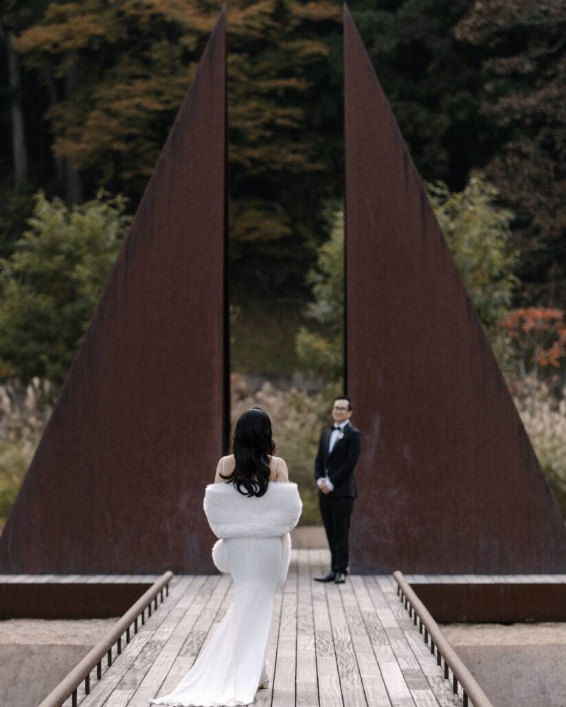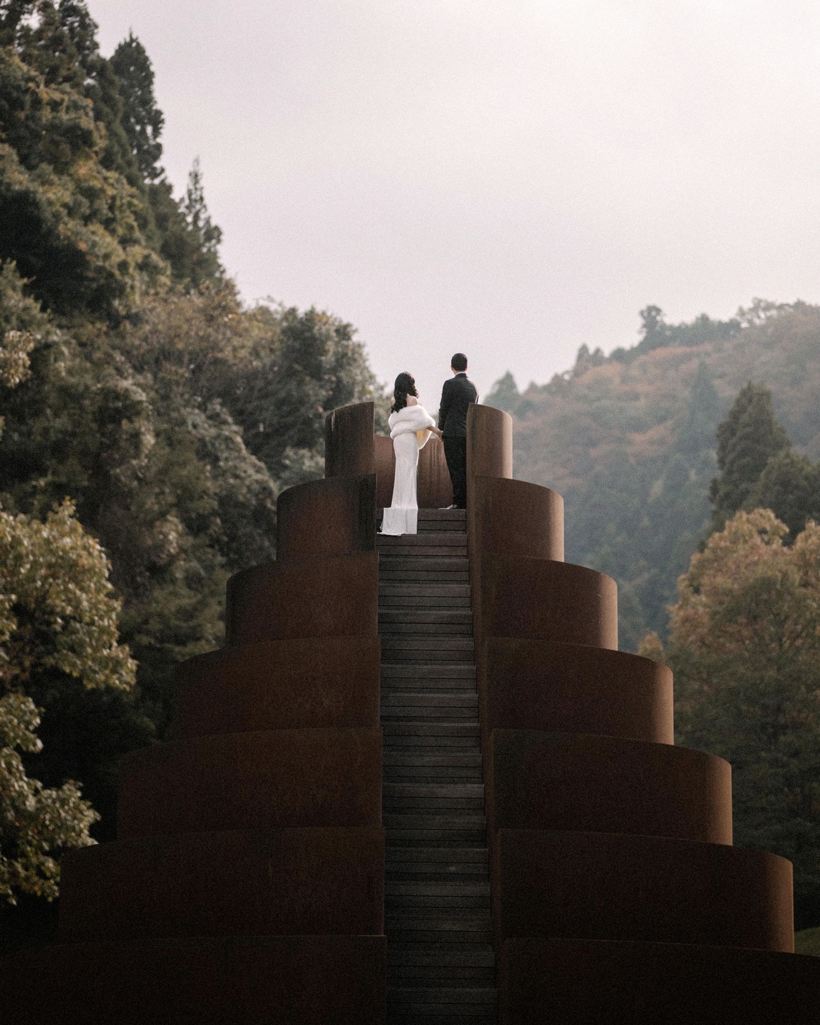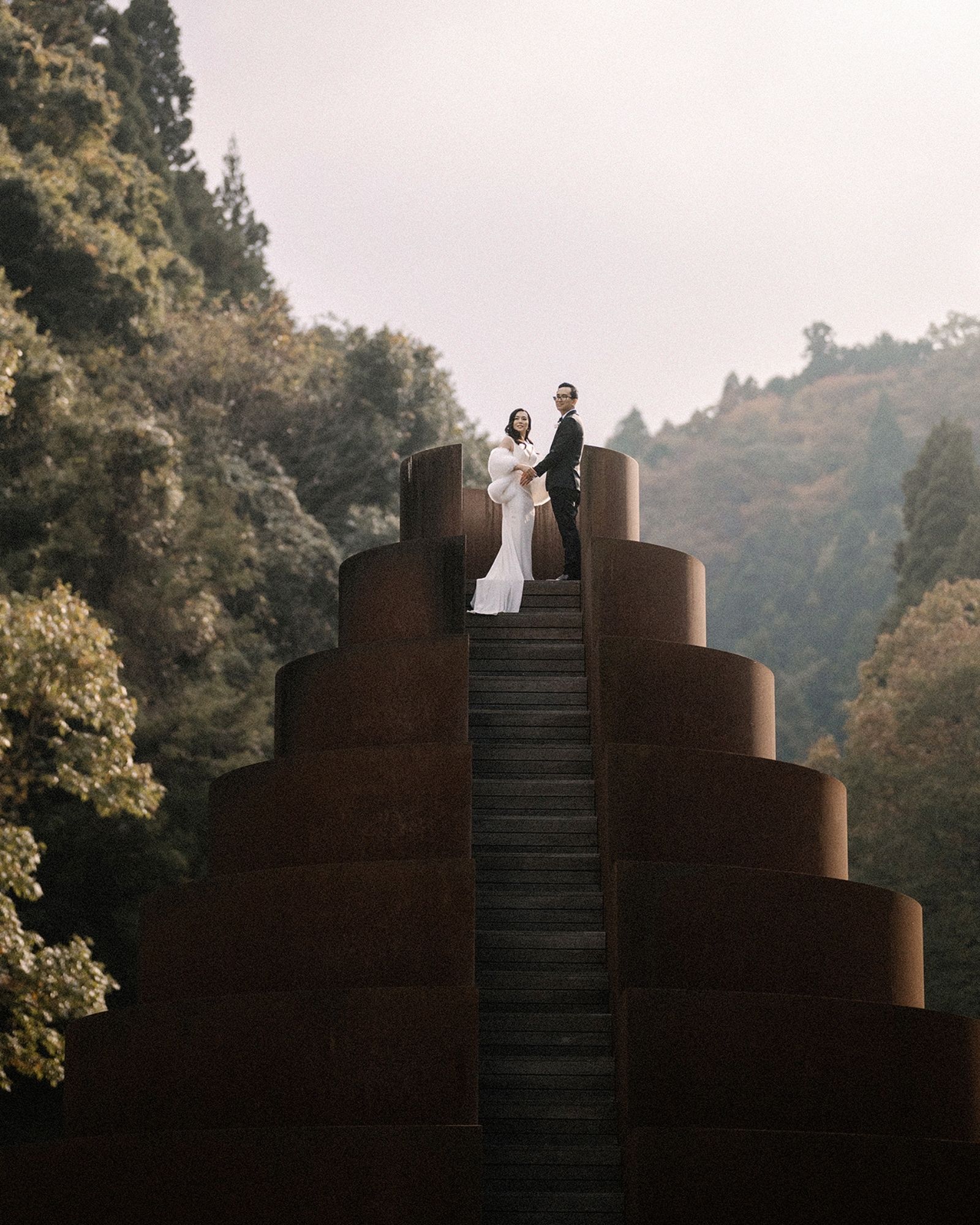 This amazing California couple, deeply in love and deeply drawn to art, chose Japan not for the spectacle of a grand guest list, but for something infinitely more personal. Their wedding wasn’t about scale. It was about story. About aesthetics. About investing not in a hundred tables of florals, but in a memory the two of them would carry forever.