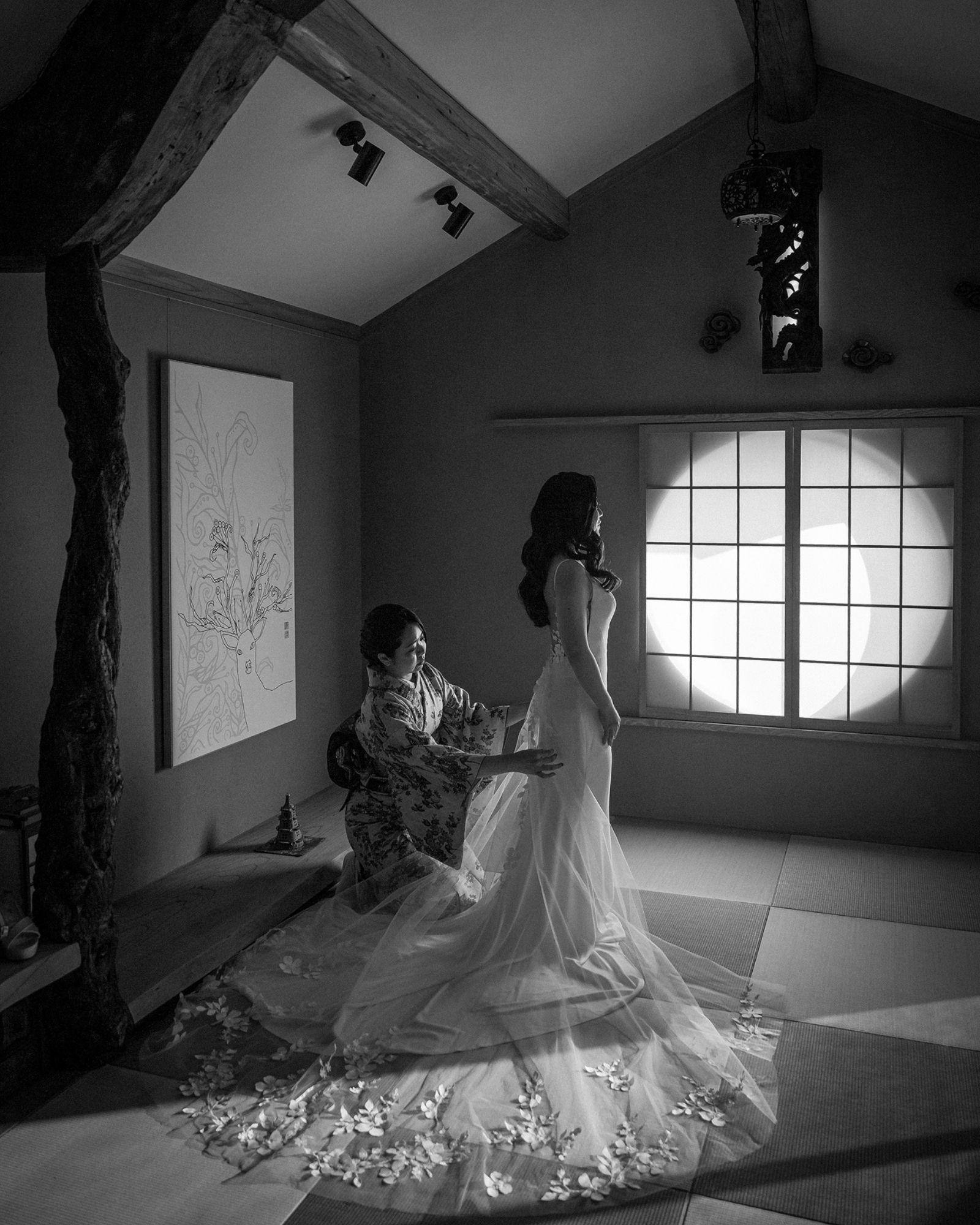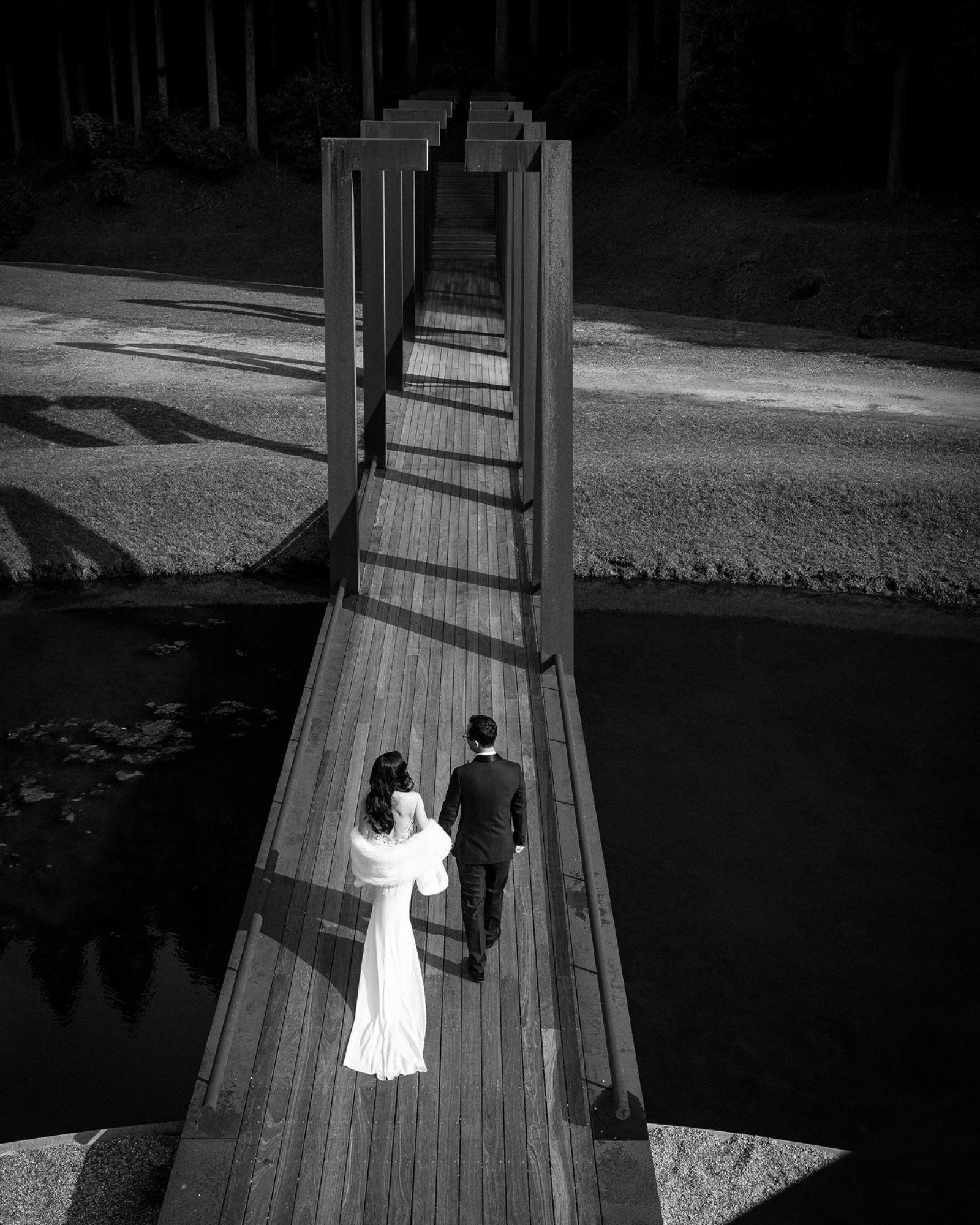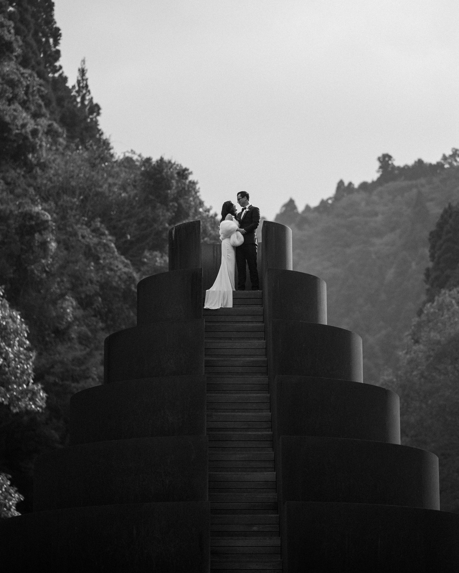 This amazing California couple, deeply in love and deeply drawn to art, chose Japan not for the spectacle of a grand guest list, but for something infinitely more personal. Their wedding wasn’t about scale. It was about story. About aesthetics. About investing not in a hundred tables of florals, but in a memory the two of them would carry forever.