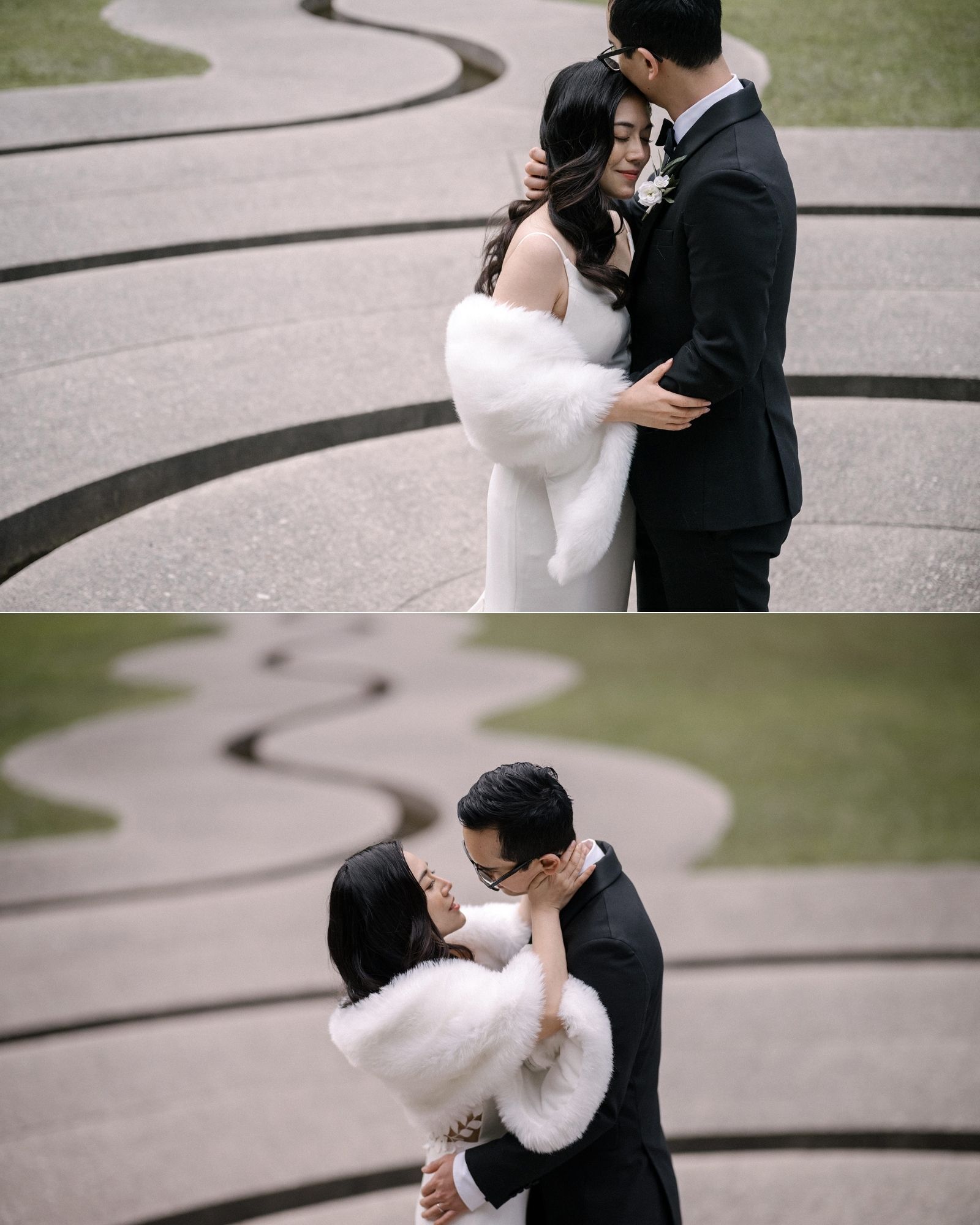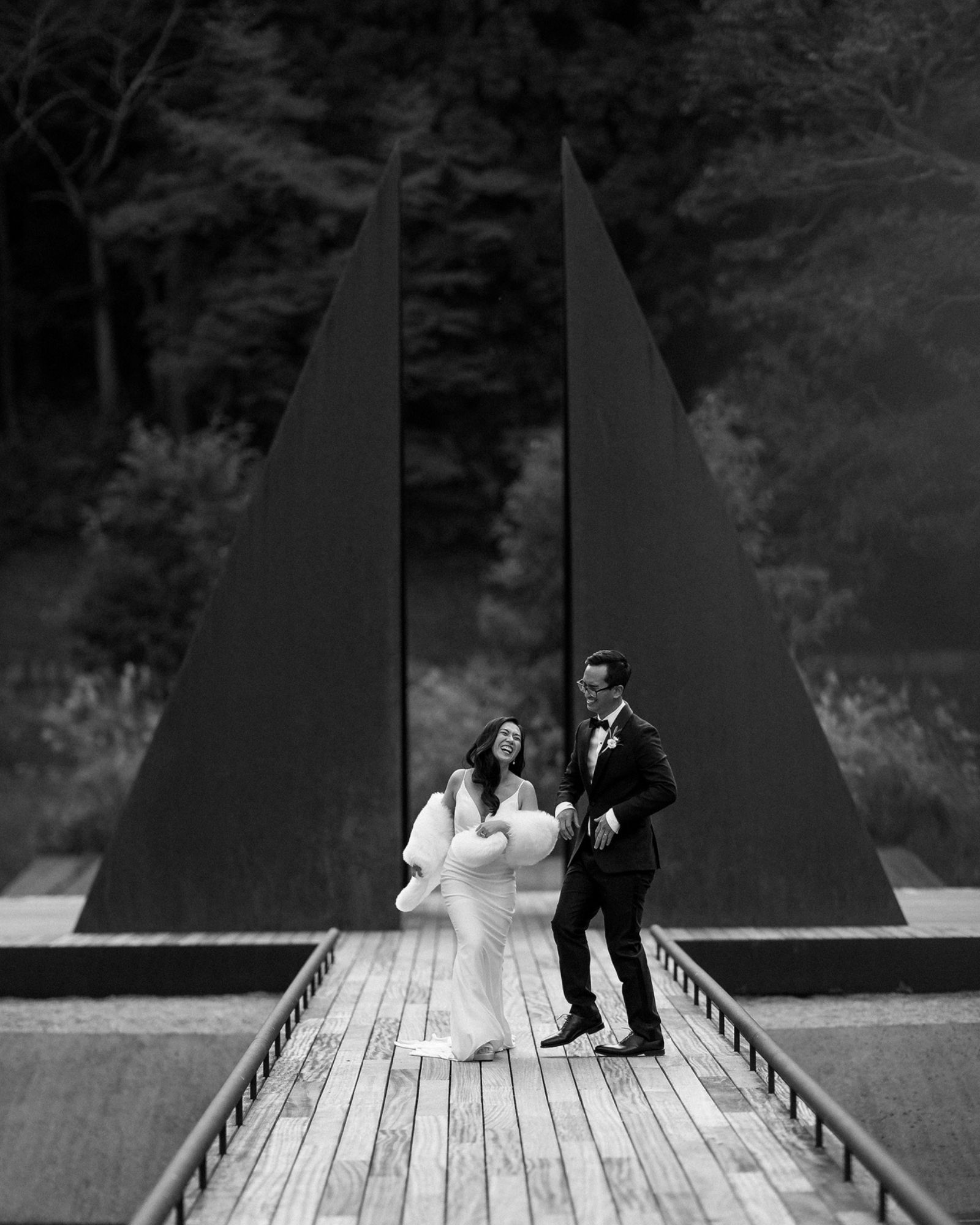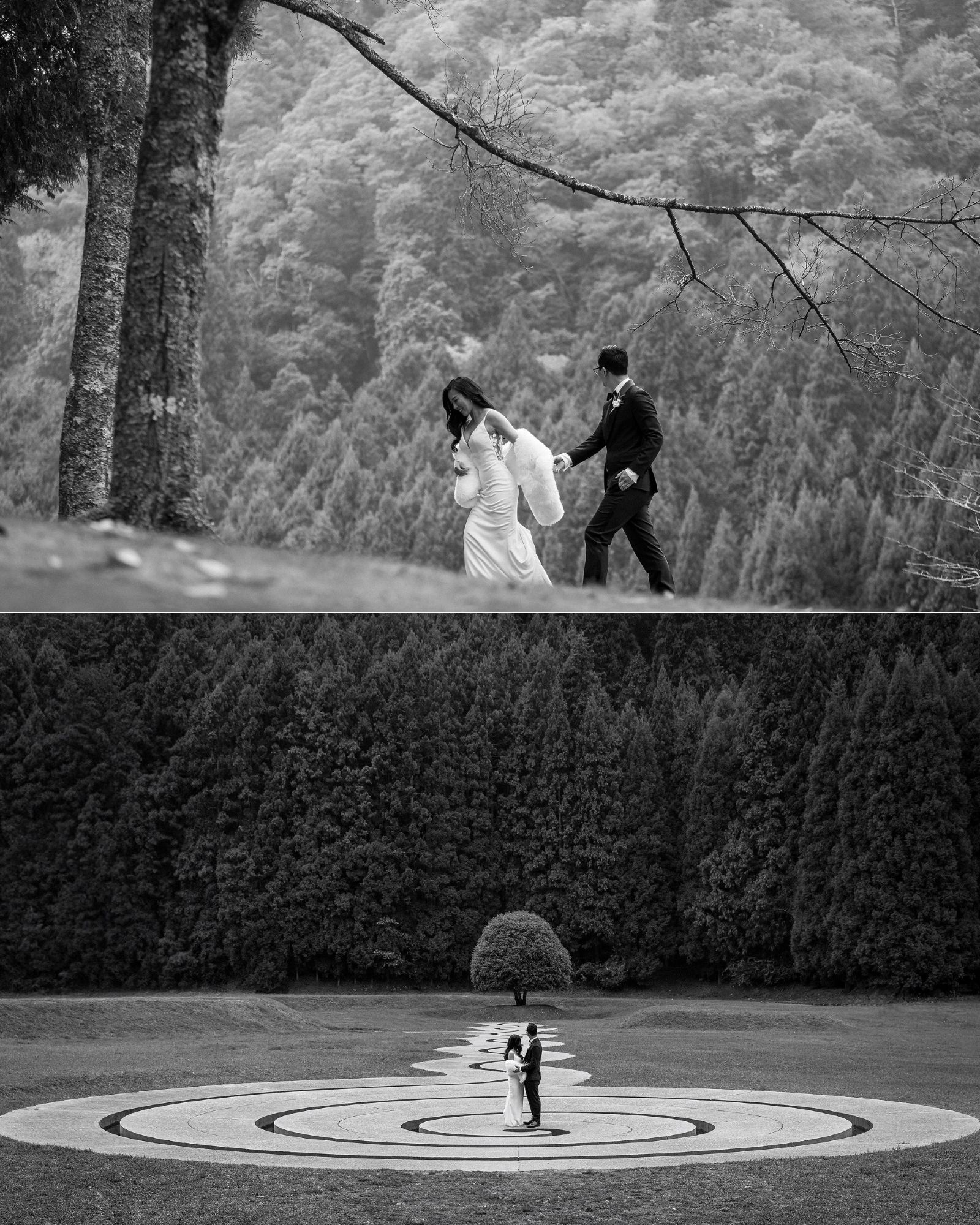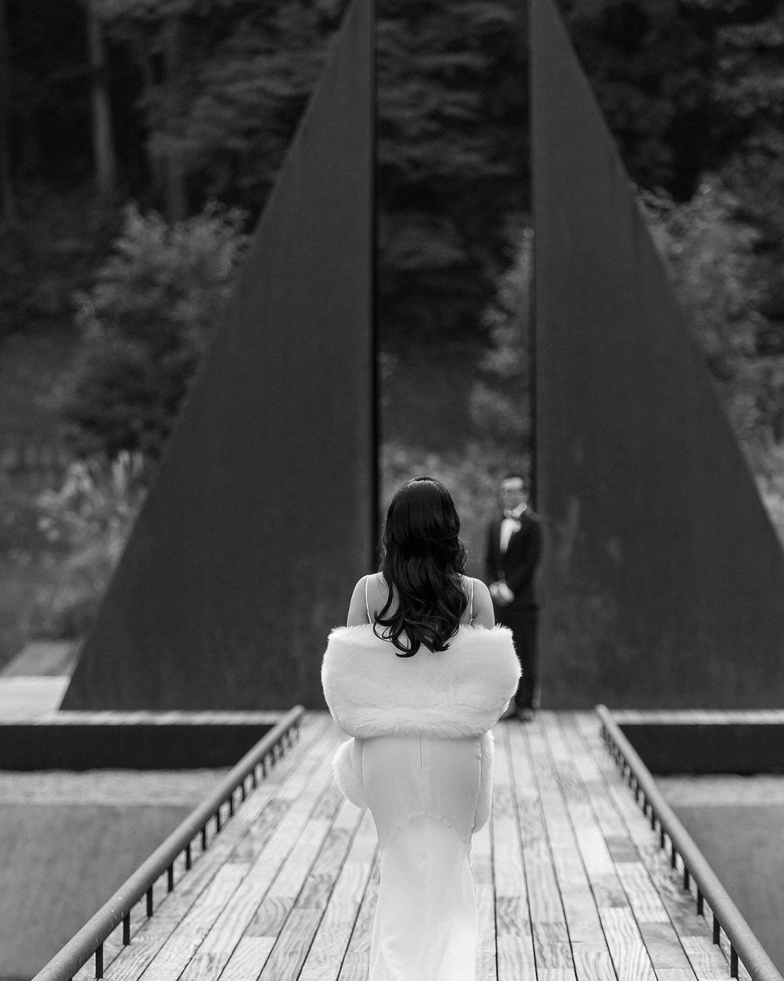 In the Art Forest, modern installations towered like sculptures in dialogue with the landscape. Glass, steel, wood … all harmonizing with sky, wind, and earth. Here, the couple’s day became more than a wedding. It became a conversation between love and art, presence and place. They spoke more vows, let themselves breathe in the stillness, and lived fully in that dialogue of beauty.