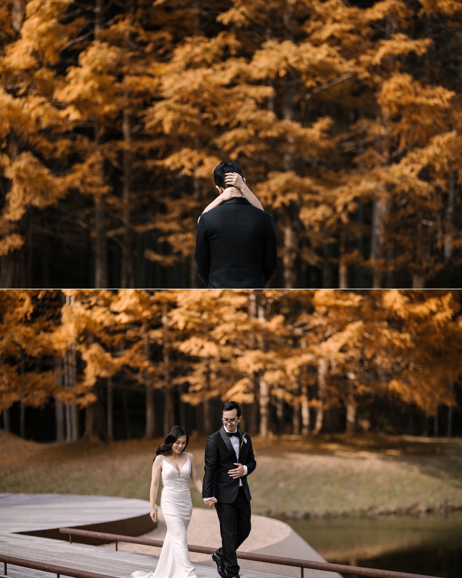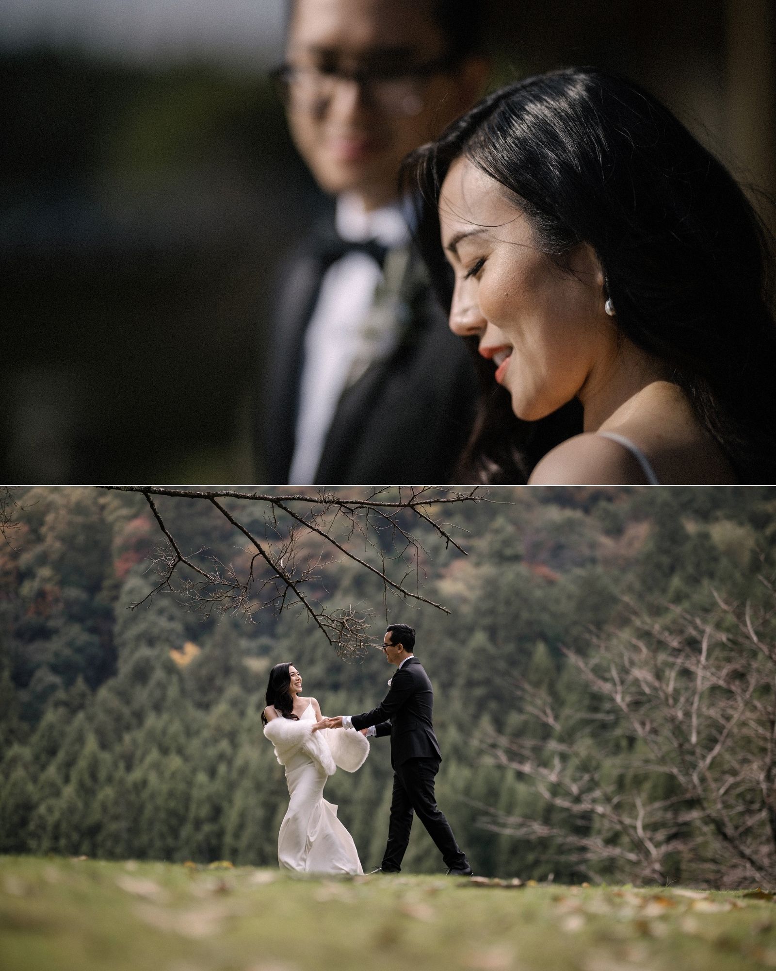 It felt fitting. Their elopement wasn’t only about the two of them, but about borrowing from the world around them. The autumn blaze of Kyoto, the quiet forest installations in Nara, the clay of a Mie pottery studio … to shape something wholly their own.