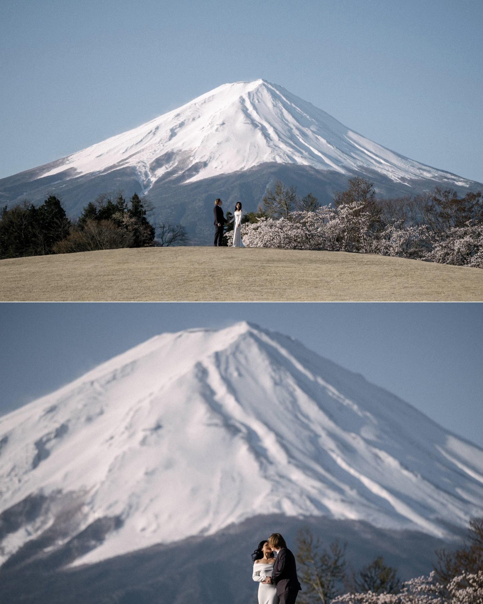 (For any future couples reading this… this is RARE! Don’t go dreaming of days like this at Mt Fuji. Luck was on their side. For sure.)