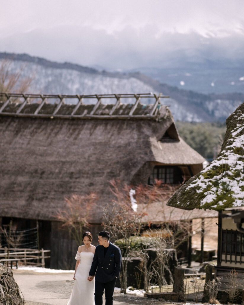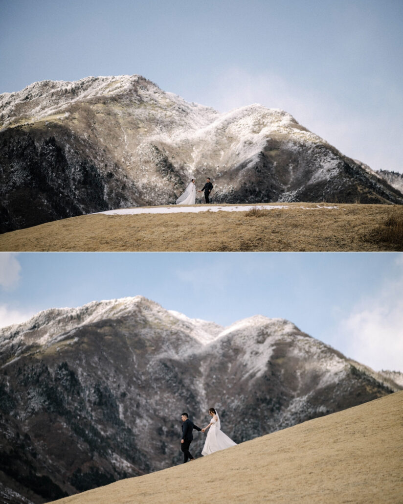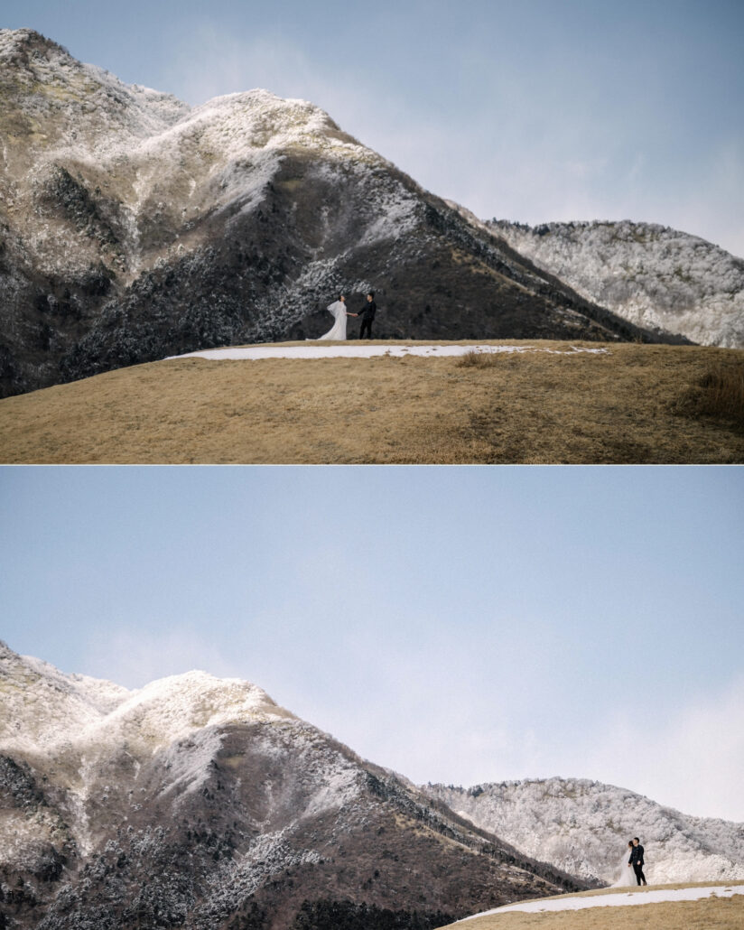 Months later, this couple got married in Singapore. Their pre-wedding photos from Japan were featured throughout the day – printed large, displayed proudly, connecting their celebration back to this mountain, this cold morning, this adventure they took together before saying vows.