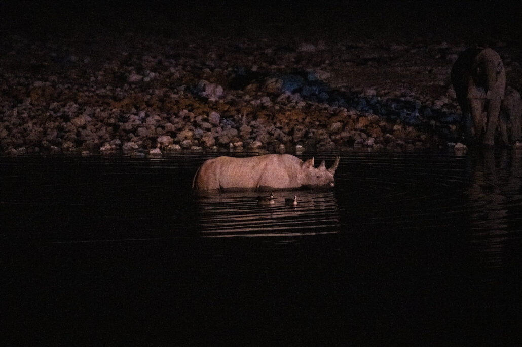 Okaukuejo isn’t fancy. Like, AT ALL. We kind of wished we were staying down outside the park at Ongava with our Onduli friends. But then we really looked around at where we are and who was beside us. Who needs chandeliers when you have rhinos in the moonlight?