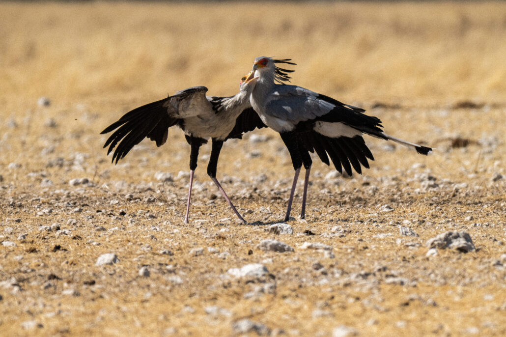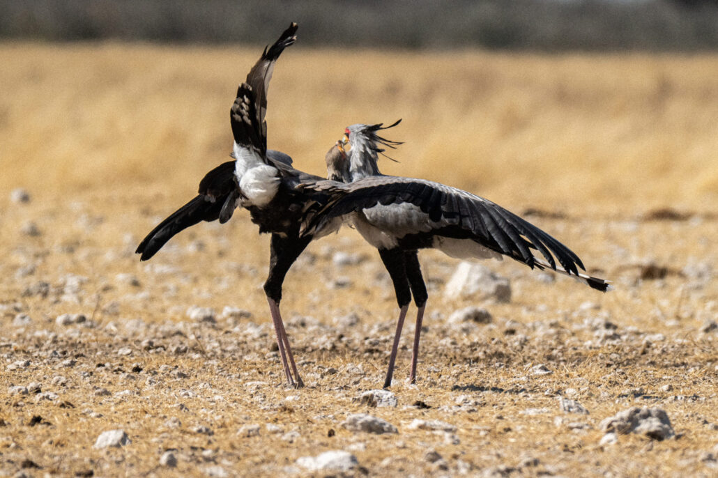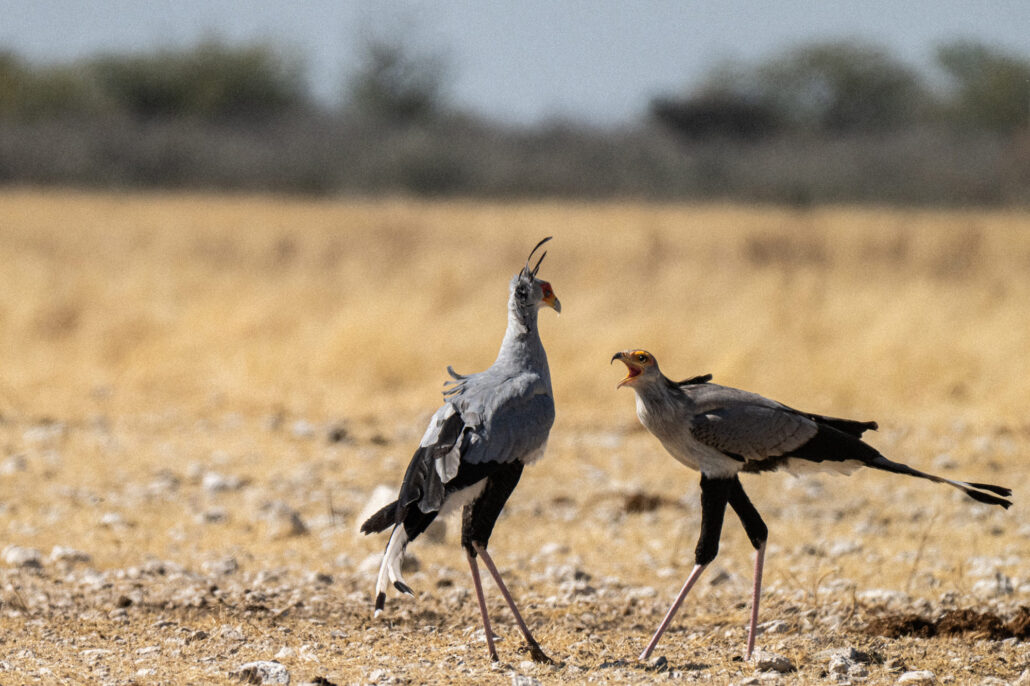 Tall, elegant, and unmistakable with their long legs and quill-like head feathers, they moved like dancers… part performance, part pursuit. We watched channeling our very best David Attenborough impressions, as one appeared to feed the other. We could only guess at what was happening and it one of those times that we truly wished we had a guide with us to explain the antics.