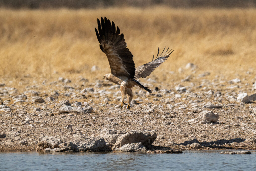 A few more characters wandered into the scene, like a spontaneous casting call at the waterhole. A lone jackal, a Tawny Eagle swooped low with cinematic flair, and an oryx appeared stage right.