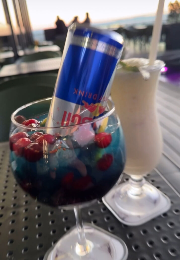 There were cocktails. Dee had something respectable. Trace… had a Trash Can. A real thing. Blue and glowing. A fluorescent dream in a glass, made of whatever spirits were left standing. Basically, the bartender’s version of “Why not?” It tasted like an end-of-trip victory. Like survival. Like chaos, celebrated.