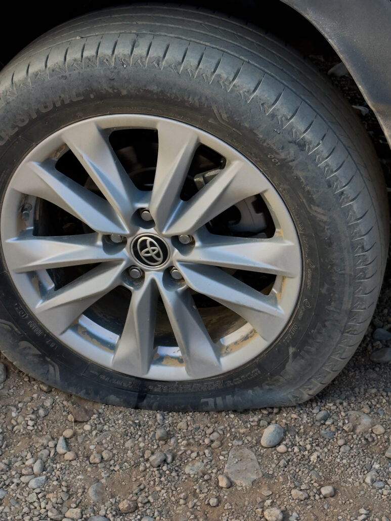 Back at the lodge, a crew helped change our tire. (Turns out, our German friends had a flat too — and we passed two other vehicles mid-repair on the way in. Testament to yesterday’s chaos drive.)