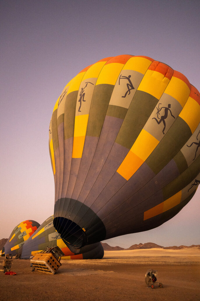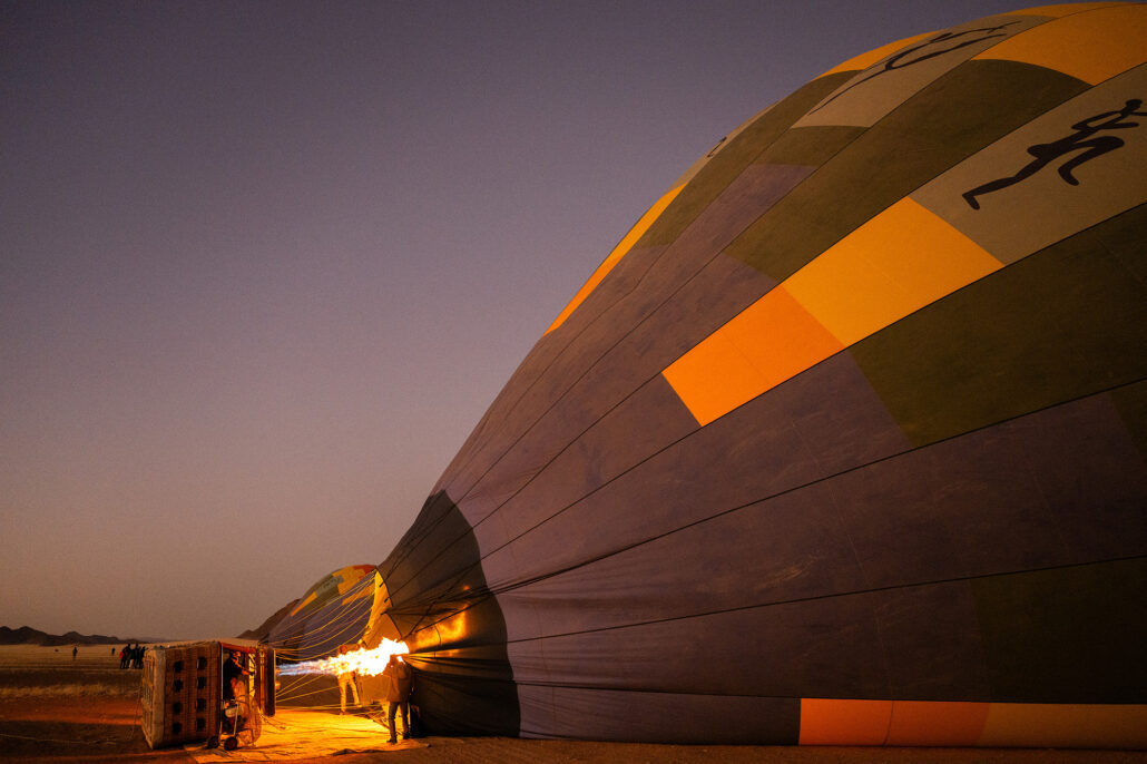 4:30am. The sky still dark, the desert hushed but expectant. (Technically, it was the second alarm. The first one was a bit too ambitious. Let’s not talk about it.) The stars were still out. Our breath visible. The desert was holding its breath too … waiting for the first light. The East Wind had finally quieted its tantrum. And so, the long-awaited moment arrived… our balloon flight was back on.