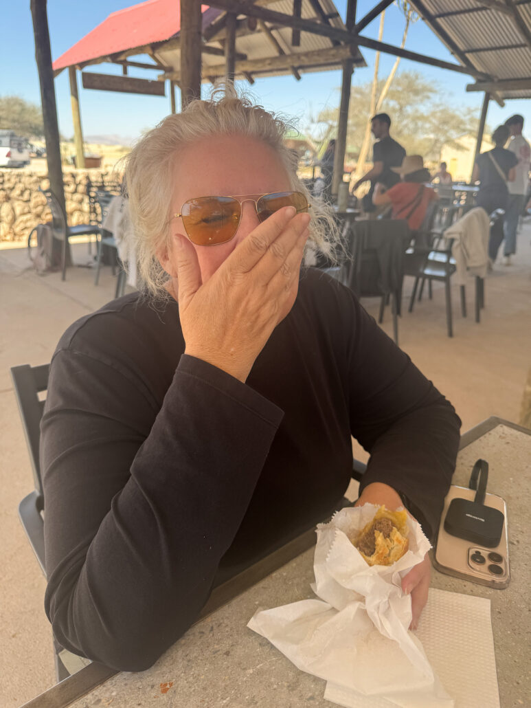 A long five hours to Walvis Bay, our last big stretch of road before the ocean. We had to cancel our 4×4 Sandwich Harbour adventure… rescheduling the balloon meant we wouldn’t make it in time to see where the dunes collapse into the Atlantic. A bit of a heartbreak. But we whispered to ourselves, next time.
