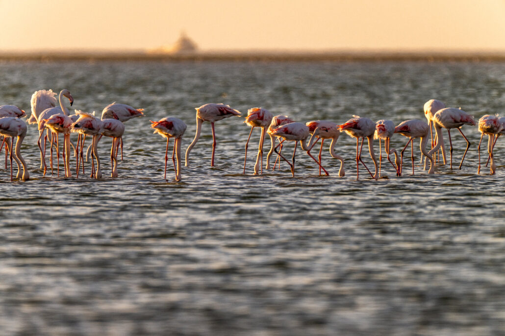 But then again, Namibia is full of surprises. The day gave us a little gift: flamingos on the water at golden hour. Hundreds of them. A pale pink welcome committee, framed by the sun sinking low behind windblown waves. And in that light, everything softened. The road, the tiredness, the change in plans.