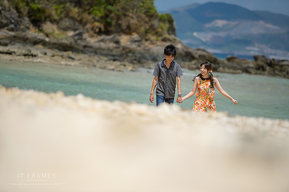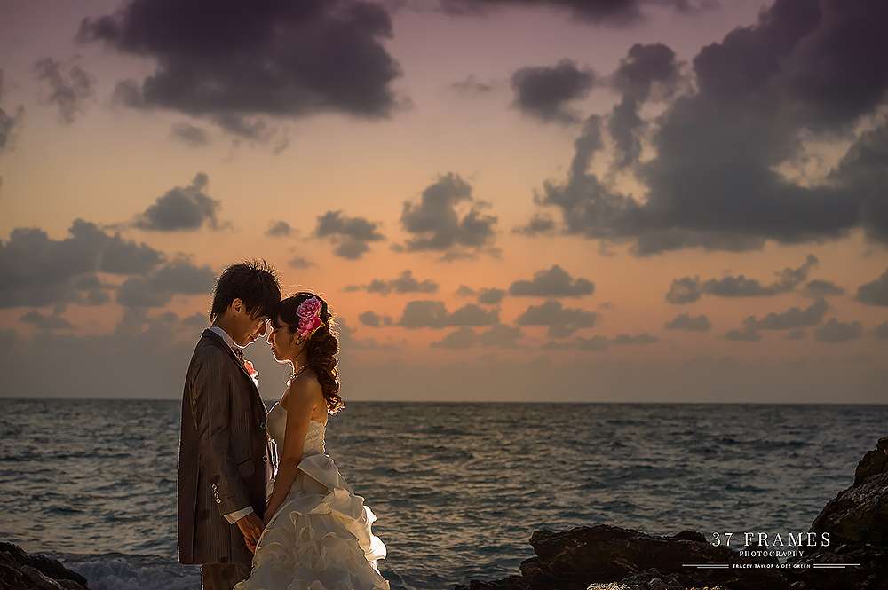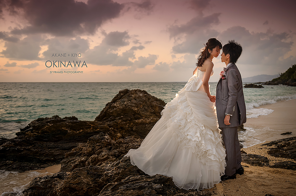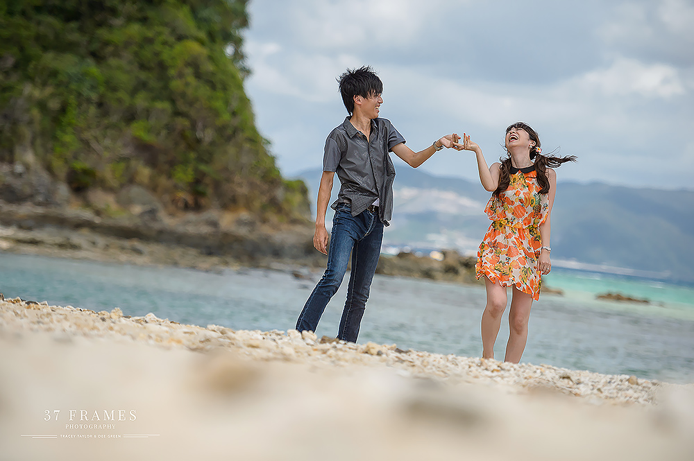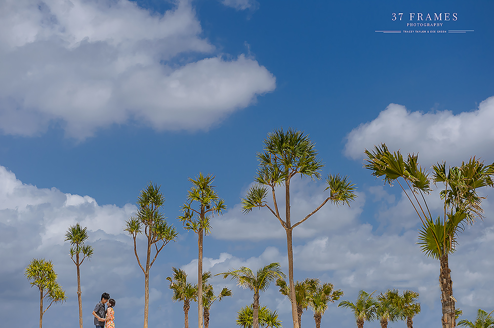 Japan is a land of contrasts. From iconic mountains, to the concrete, extraordinary cities with so many pockets of beauty. We adore it all. The spectacular forests, the cultural assets, the coastlines, the nature & UNESCO sites…But there’s one place we are always waiting to get back to & we haven’t explored nearly enough…Okinawa. It has it all…more or less. Pristine beaches, vibrant culture and stunning natural beauty. So it was such a joy to be part of Akane & Kiyo’s Pre-wedding Story in preparation for their beautiful upcoming November Wedding (we are truly excited for!!). While Tokyo endured incredible deluges, we had nothing but blue skies down south…Palm trees in the breeze and an azure sea…We had a fabulous day together. As is often the case in Okinawa Bridal companies plan the wedding attire part of the day & there can be many restrictions on bringing in outside photographers, but this company kindly allowed us to come in to photograph as well (& we are so grateful). We did have to work around their photographer (great guy but of course not ideal), and their plan (no control of location or timing), but that makes it all even more of a challenge. And despite this we all had a wonderful time, working the light, going rogue when we could (the company kindly let us run away here & there) and making the very most of our time together to tell a story of soulmates with a love of the sea. Akane & Kiyo, thank you truly for an exquisite trip & a darling chapter in your story. We simply cannot wait for what’s next…