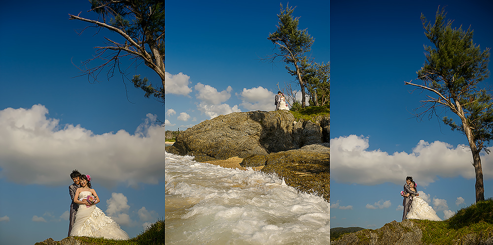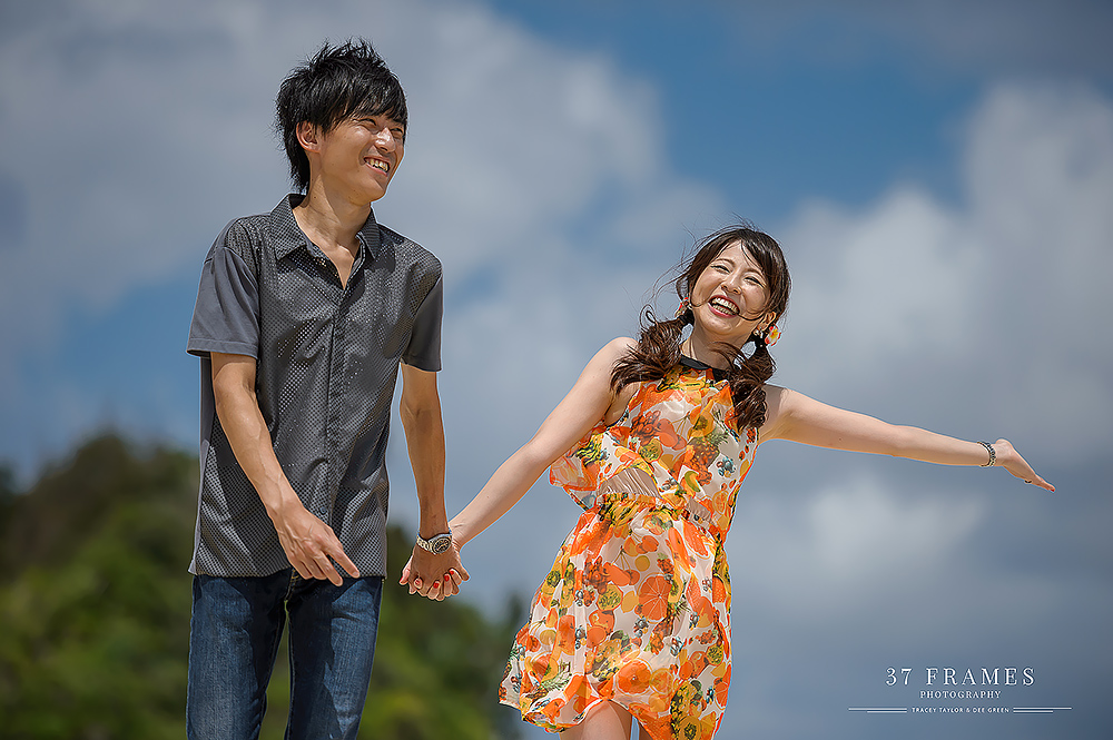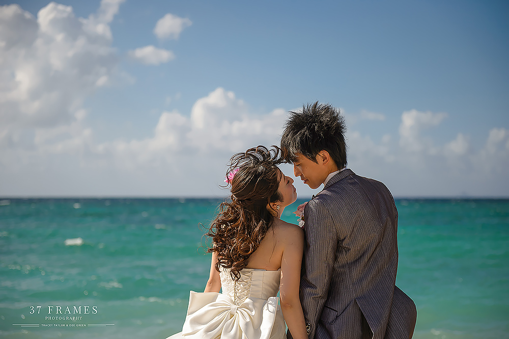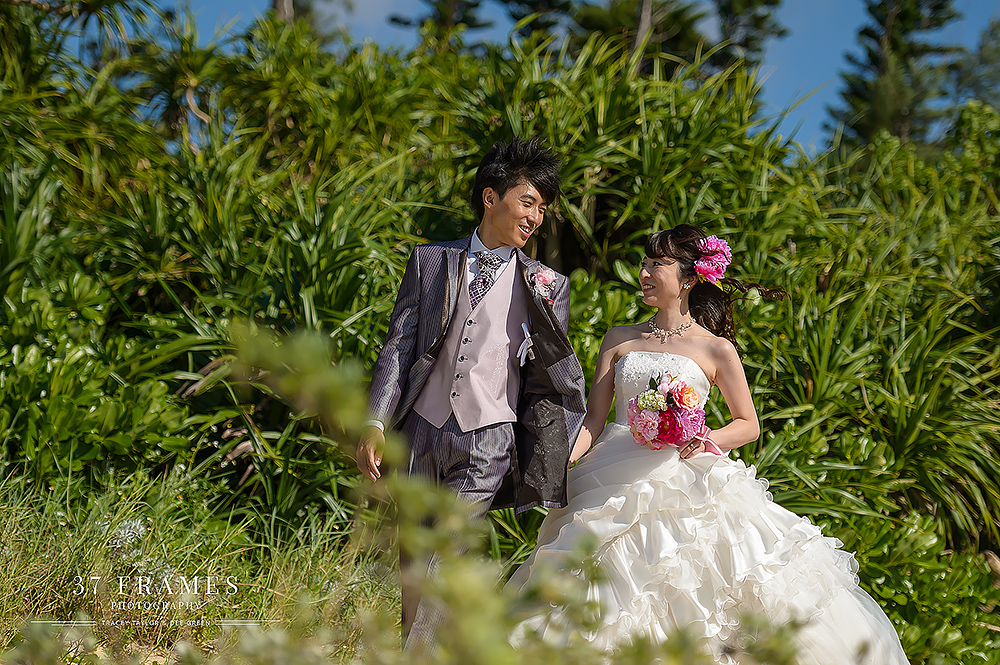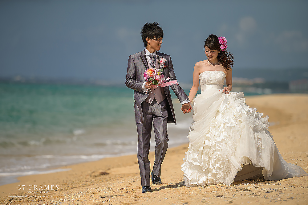 Japan is a land of contrasts. From iconic mountains, to the concrete, extraordinary cities with so many pockets of beauty. We adore it all. The spectacular forests, the cultural assets, the coastlines, the nature & UNESCO sites…But there’s one place we are always waiting to get back to & we haven’t explored nearly enough…Okinawa. It has it all…more or less. Pristine beaches, vibrant culture and stunning natural beauty. So it was such a joy to be part of Akane & Kiyo’s Pre-wedding Story in preparation for their beautiful upcoming November Wedding (we are truly excited for!!). While Tokyo endured incredible deluges, we had nothing but blue skies down south…Palm trees in the breeze and an azure sea…We had a fabulous day together. As is often the case in Okinawa Bridal companies plan the wedding attire part of the day & there can be many restrictions on bringing in outside photographers, but this company kindly allowed us to come in to photograph as well (& we are so grateful). We did have to work around their photographer (great guy but of course not ideal), and their plan (no control of location or timing), but that makes it all even more of a challenge. And despite this we all had a wonderful time, working the light, going rogue when we could (the company kindly let us run away here & there) and making the very most of our time together to tell a story of soulmates with a love of the sea. Akane & Kiyo, thank you truly for an exquisite trip & a darling chapter in your story. We simply cannot wait for what’s next…