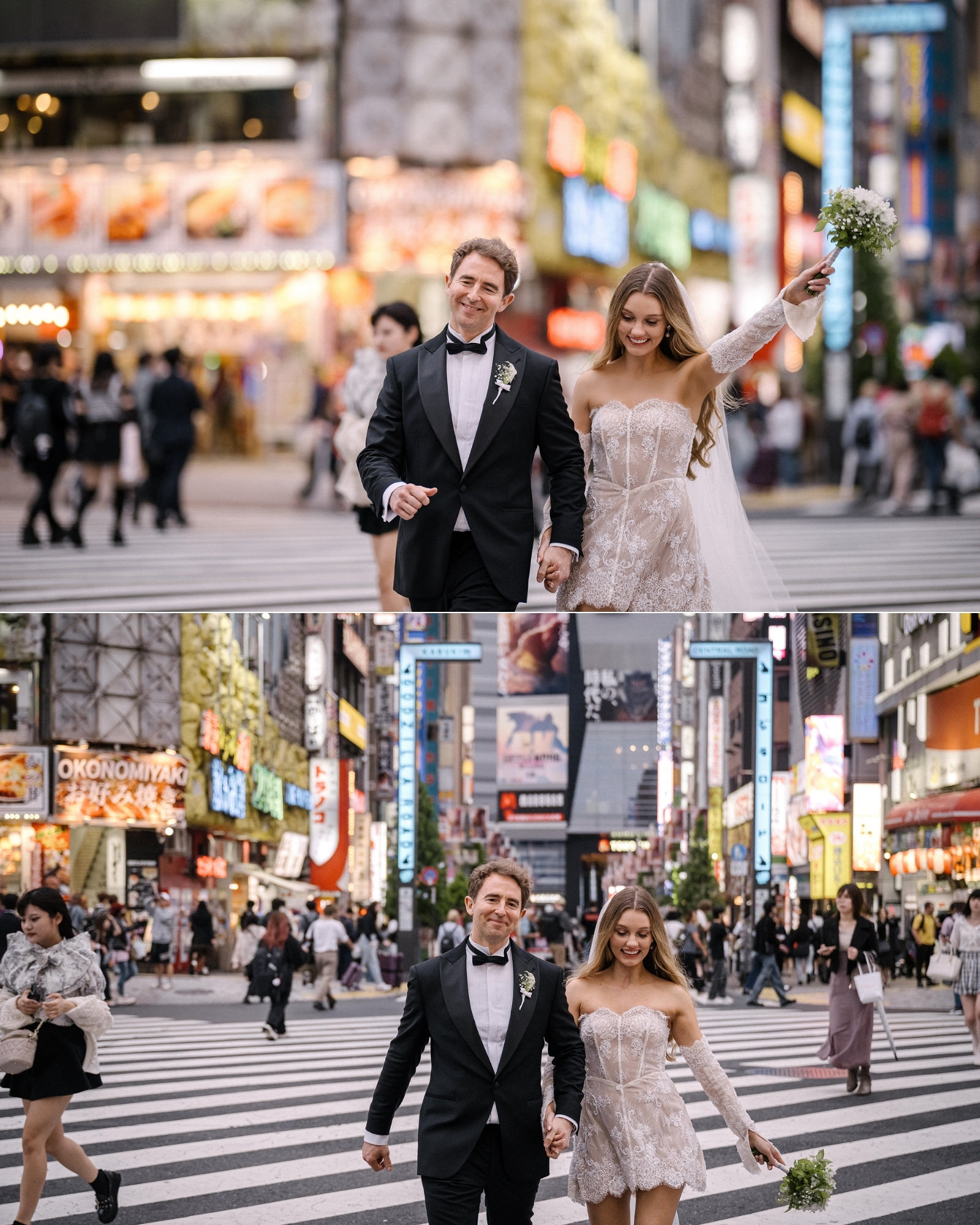 A bouquet toss. A colour-wash light show that shimmered through the night. And, naturally, the stomp across Shinjuku Crossing on the way there. The most Tokyo tradition of them all.