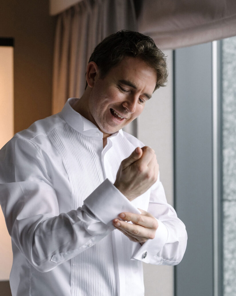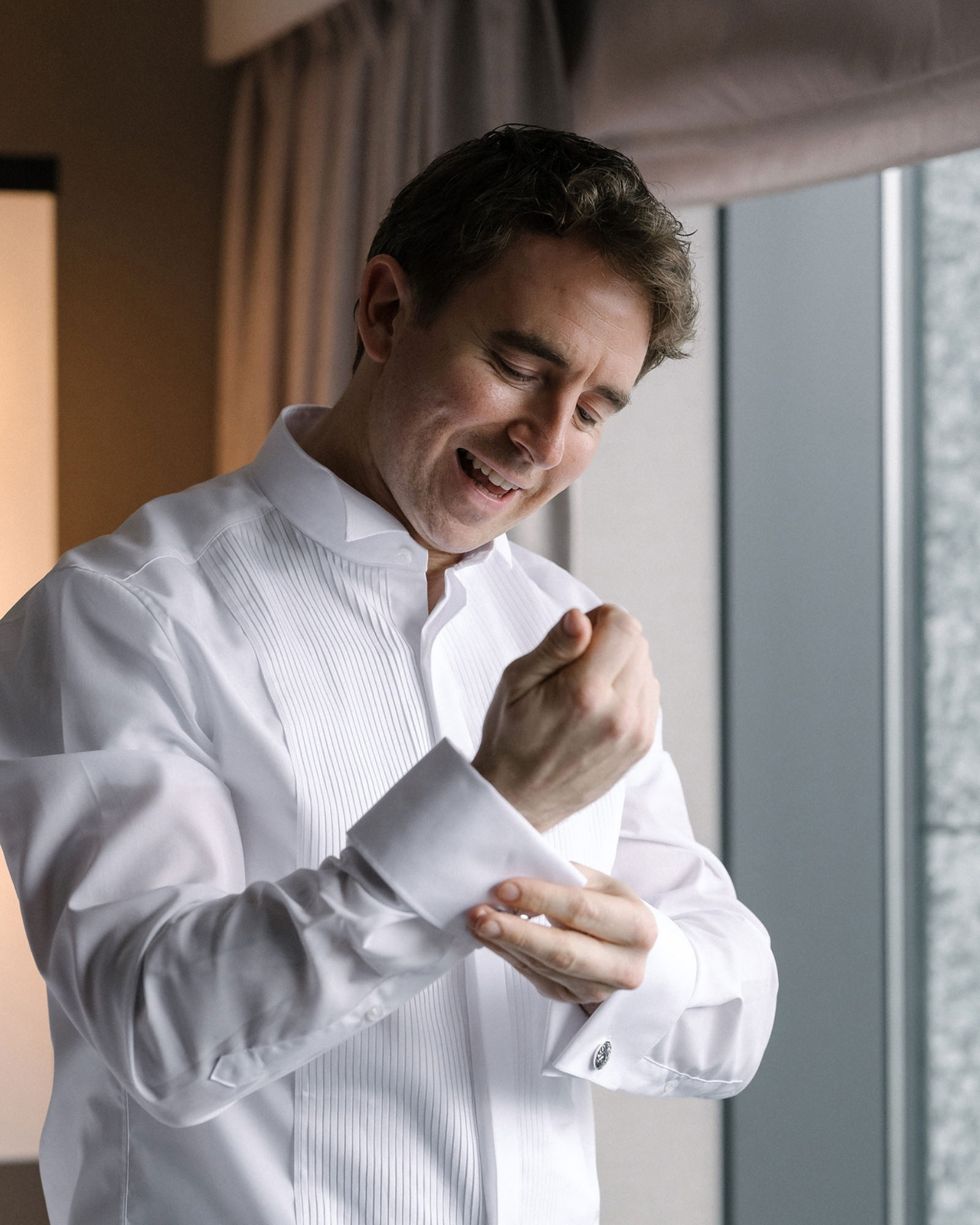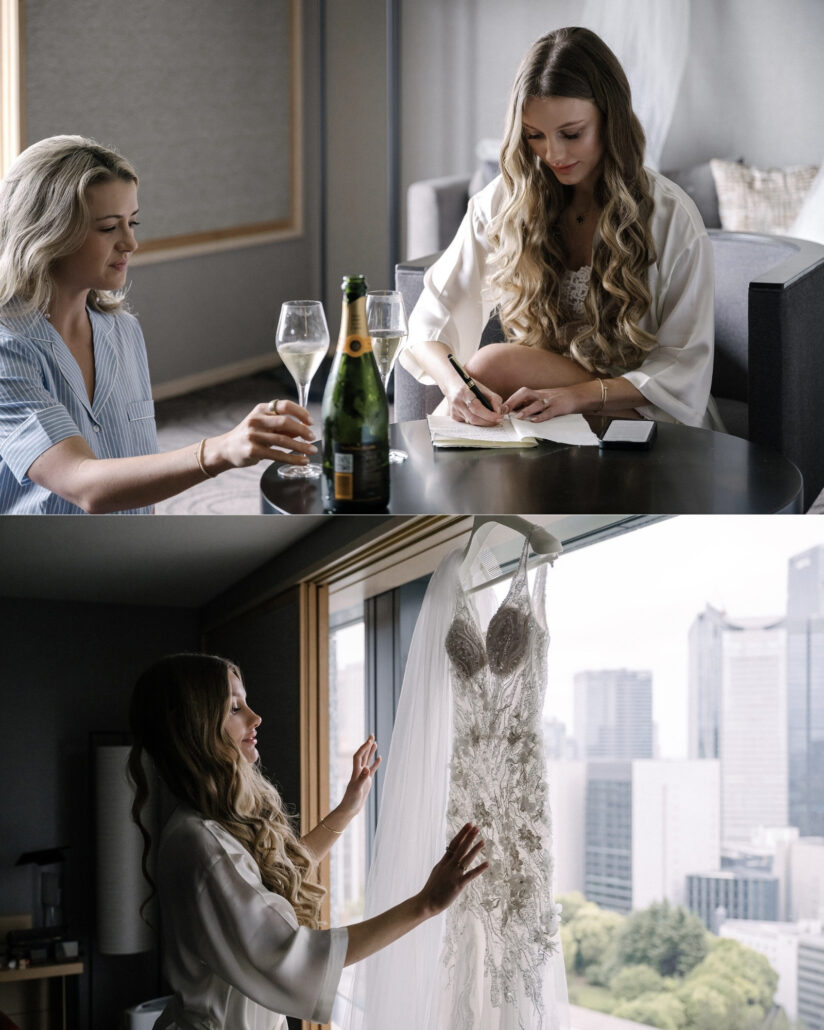 In adjoining suites, the bride and her maid of honour played music, wrote last-minute vows, and sipped champagne while the groom and his best man fine-tuned their speeches across the hall. Laughter. Protein drinks and coffee. That nervous joy you only feel once.
