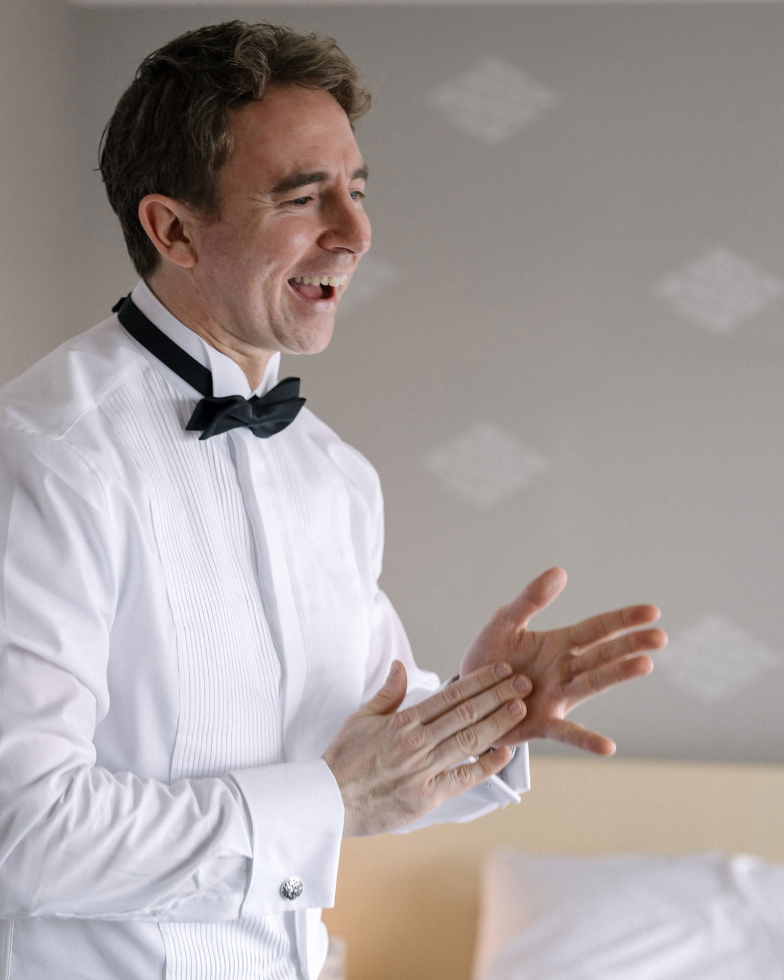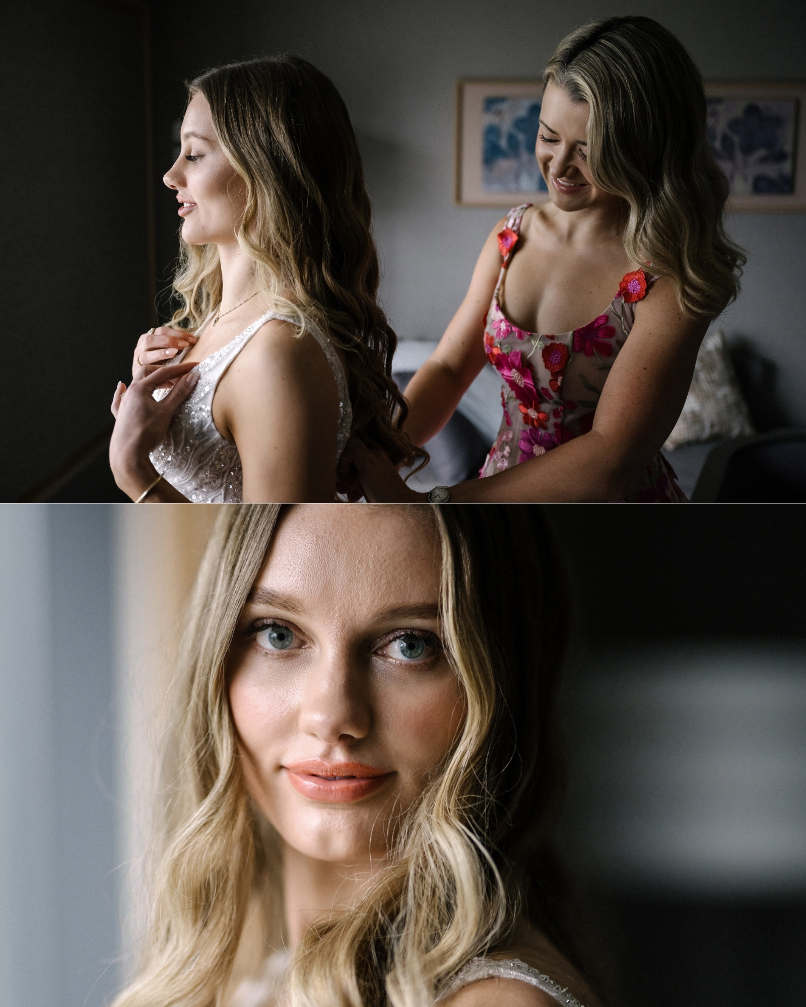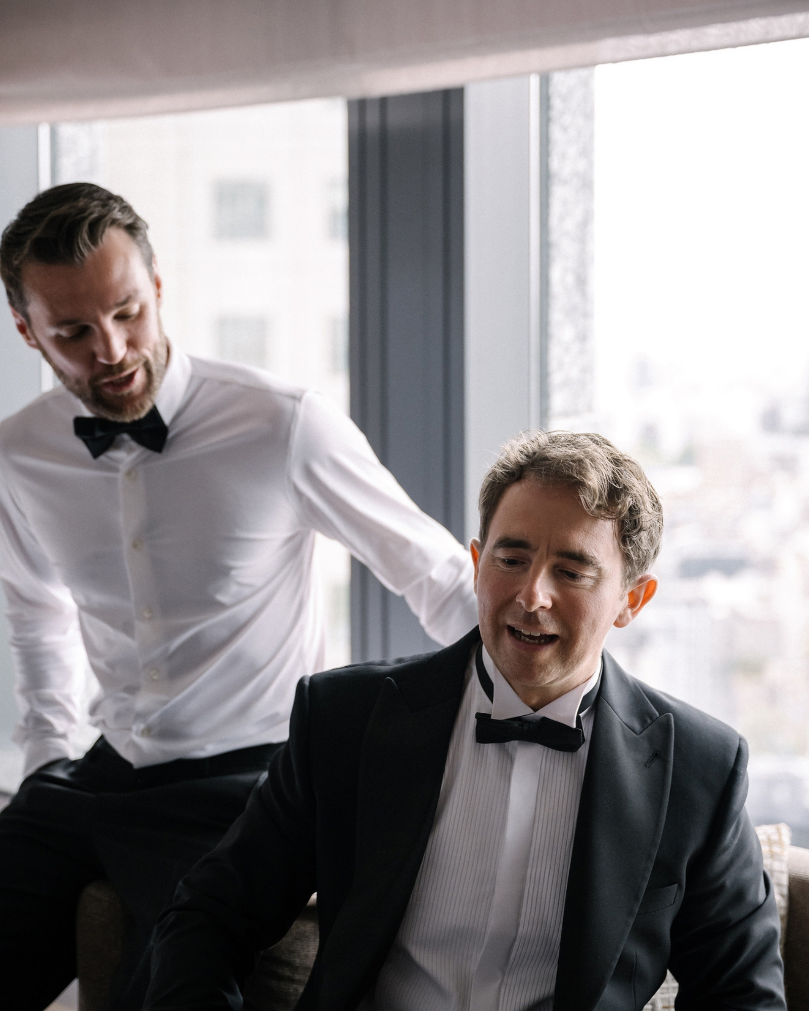 In adjoining suites, the bride and her maid of honour played music, wrote last-minute vows, and sipped champagne while the groom and his best man fine-tuned their speeches across the hall. Laughter. Protein drinks and coffee. That nervous joy you only feel once.