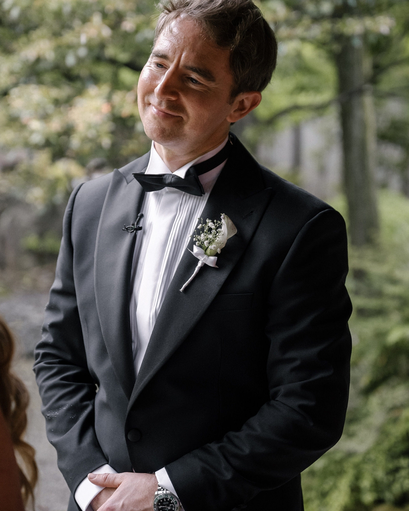Rain fell steadily, turning the garden a deeper shade of green. Two violinists played a modern hit beneath the eaves, bridging eras just as this couple had. Old meets new, ceremony meets city. The bride appeared through the drizzle, her dress catching the light, her steps slow and sure across stone paths.